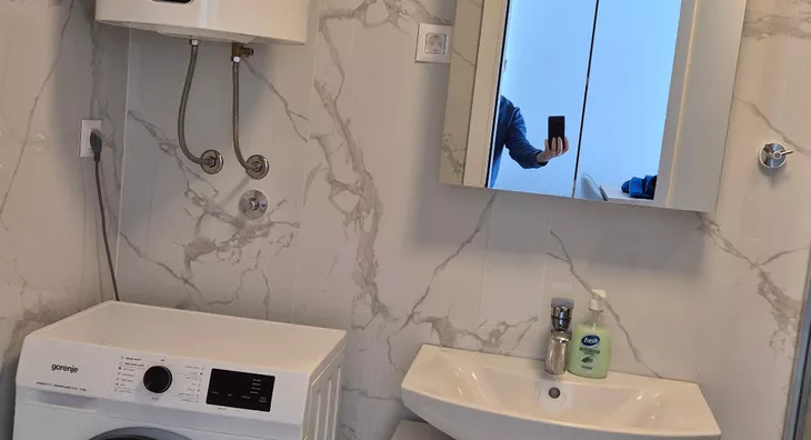 - Opremljenost: Namešteno - TV, klima, veš mašina, kuhinjski elementi, sudo mašina, frižider, zamrzivač, šporet, rerna, ležaj, plakar
