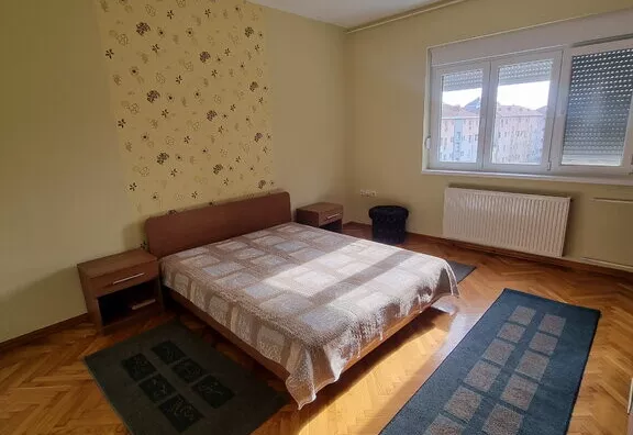 Lep trosoban stan u centru grada od 93m2 dvostrano orjentisan na trećem spratu u zgradi bez lifta. Sastoji se od dnevnog boravka koji vodi na prostranu terasu , dve sobe, trpezarije sa kuhinjom i velikom ostavom, kupatila i odvojenog WC-a. Prozori su PVC, na podovima je parket, a grejanje je na struju. Obavezan depozit u visini jedne kirije, minimalni najam 6 meseci za nepušače , bez kućnih ljubimaca.