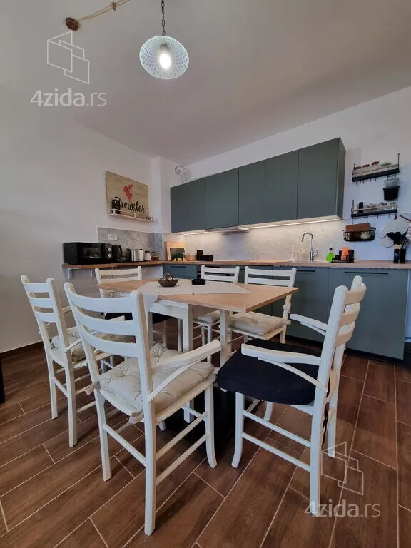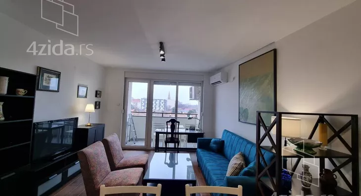 Moderno opremljen dvosoban stan od 51m2 u novosagrađenoj zgradi sa liftom na 3./5 spratu. Sastoje sa od velikog dnevnog boravka sa trpezarijom i kuhinjom koji vodi na terasu, spavaće sobe i kupatila sa tuš kabinom. Na podovima je tarket prozori su PVC, a grejanje je na gas. Stan je opremljen novim nameštajem, uređajima, priborm. Ima obezbeđeno parking mesto u dvorištu zgrade. Obavezan depozit u visini jedne kirije, minimalni najam 6 meseci za nepušače , bez kućnih ljubimaca. Dostupan od 15.10.2025.