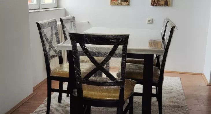 - Opremljenost: Namešteno - TV, klima, veš mašina, kuhinjski elementi, frižider, zamrzivač, šporet, rerna, ležaj, plakar