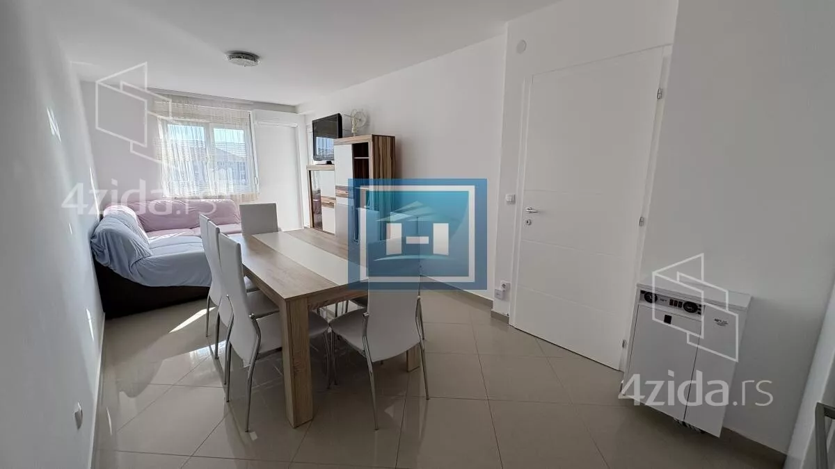- Opremljenost: Namešteno - interfon, klima, veš mašina, frižider, rerna, ležaj, plakar, kanalizacija