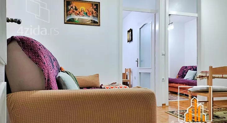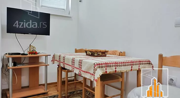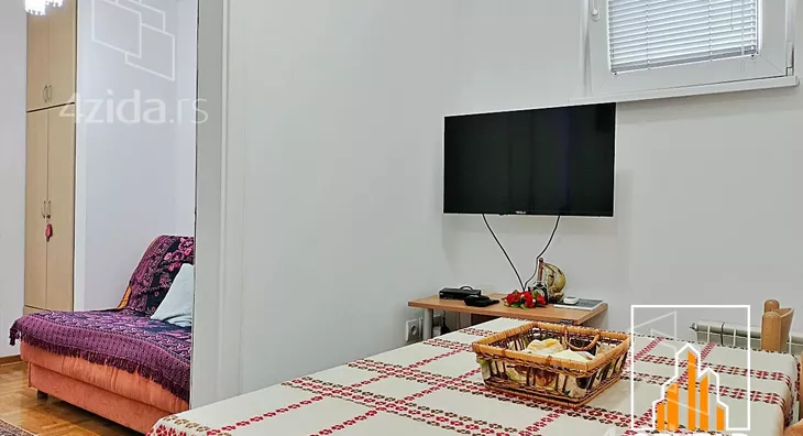 - Opremljenost: Namešteno - TV, klima, veš mašina, kuhinjski elementi, frižider, zamrzivač, šporet, rerna, ležaj, plakar, ugradni plakar