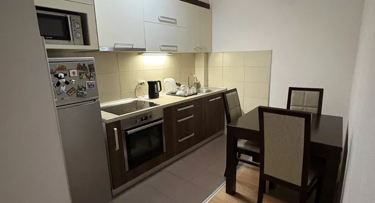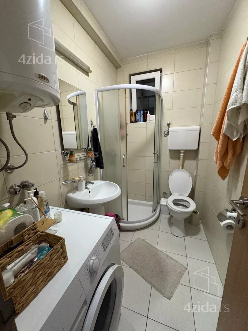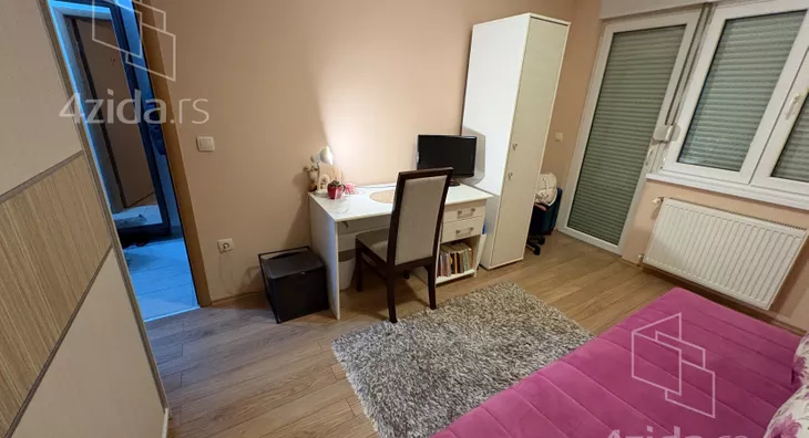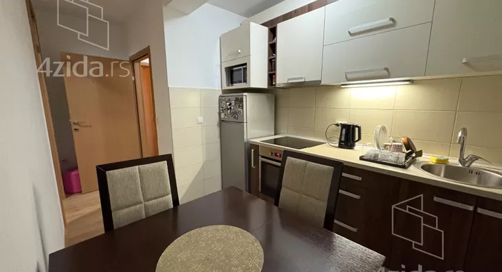 - Opremljenost: Namešteno - TV, klima, veš mašina, kuhinjski elementi, frižider, zamrzivač, šporet, rerna, ležaj, plakar, ugradni plakar
