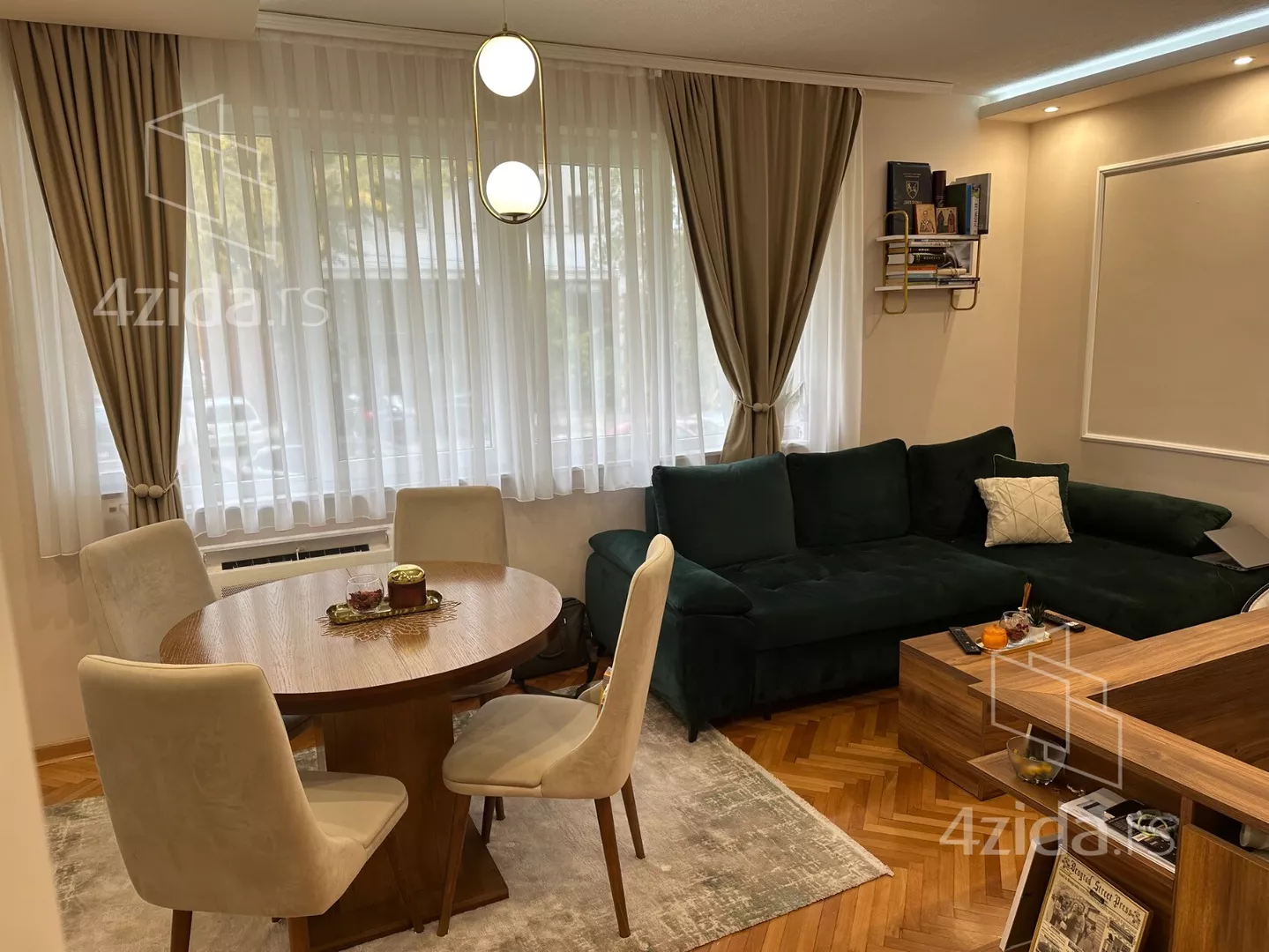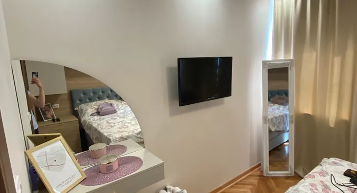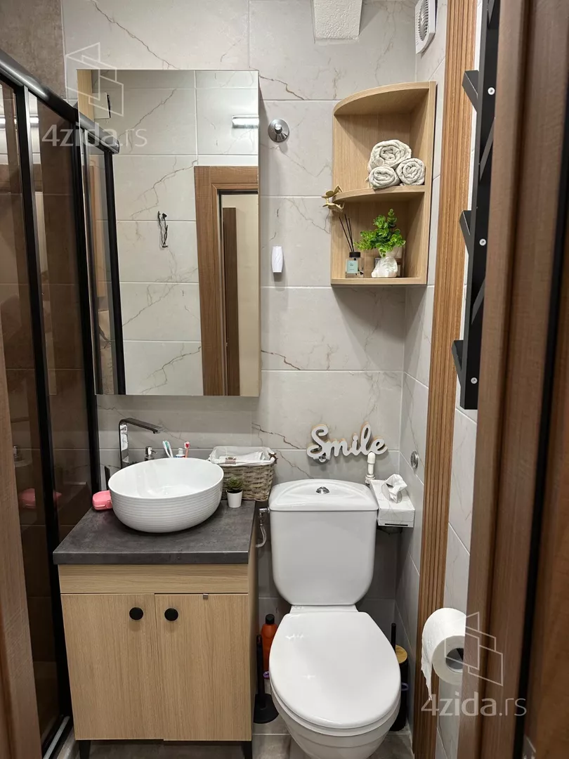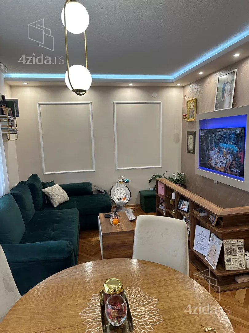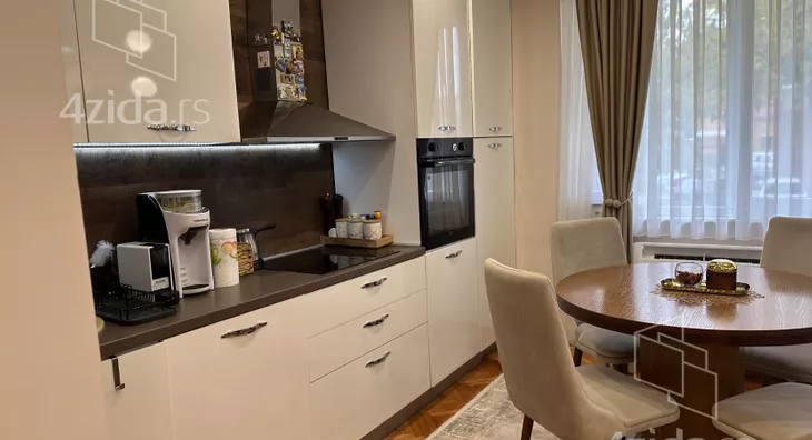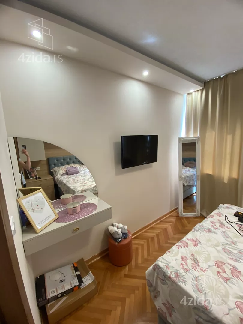 - Opremljenost: Namešteno - TV, klima, veš mašina, kuhinjski elementi, sudo mašina, frižider, zamrzivač, šporet, rerna, ležaj, plakar, ugradni plakar, kancelarijski nameštaj