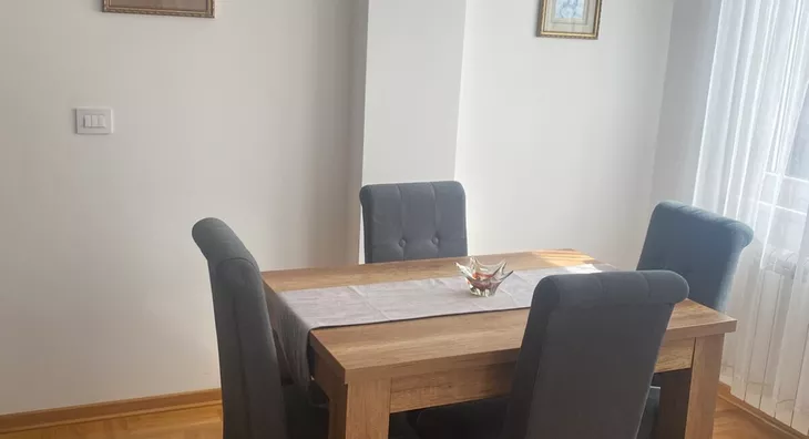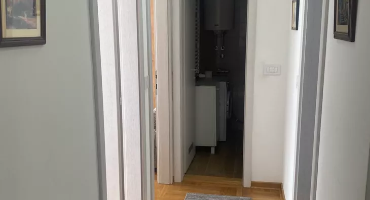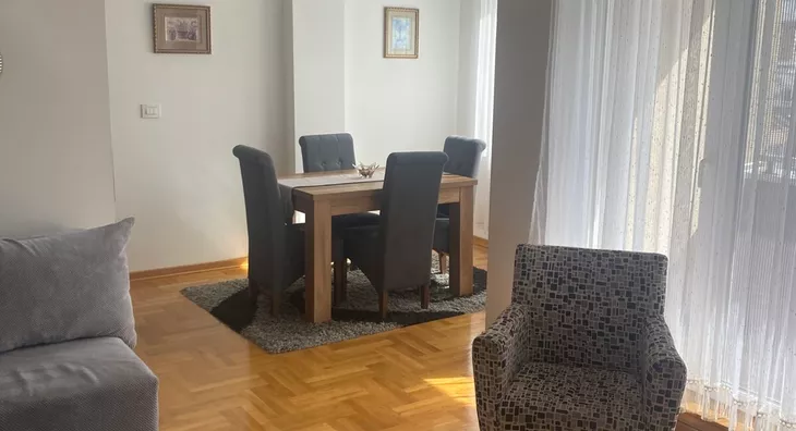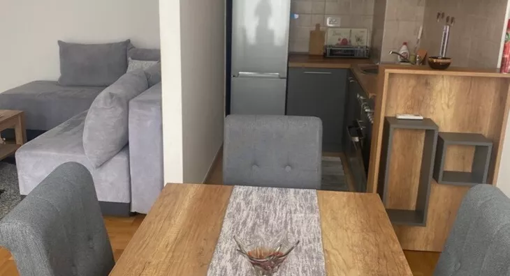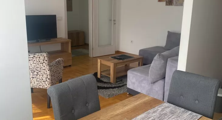 Stan konforan dvosoban sa pripadajucim garaznim mestom koje je ukljuceno u cenu, obavezan depozit, kirija i agenciska usluga pola prve kirije jednokratno.