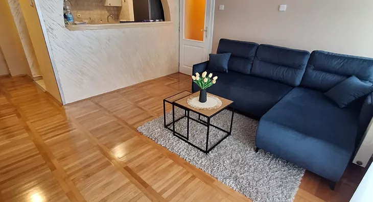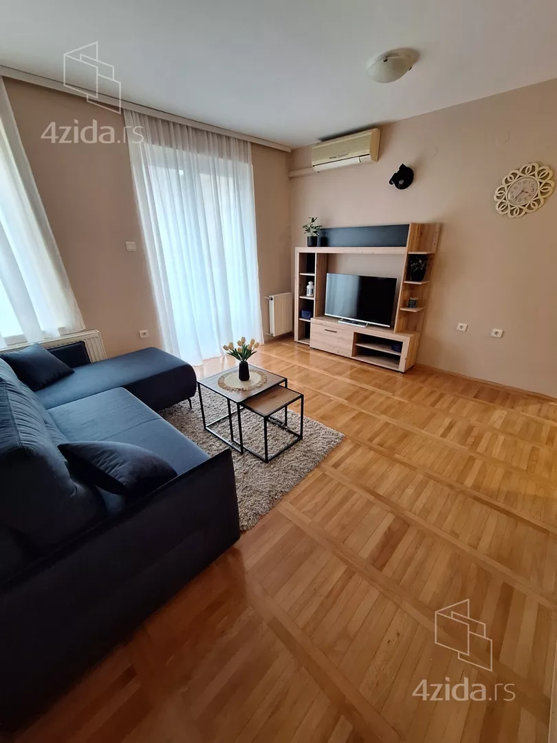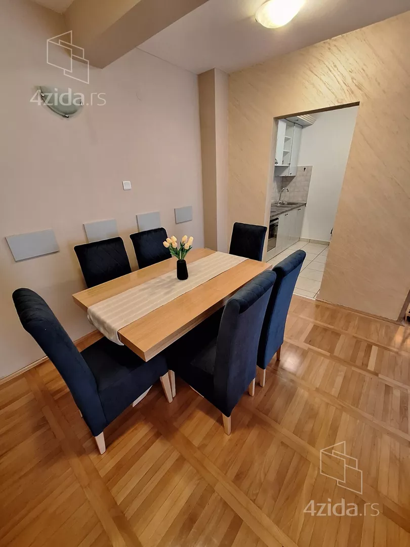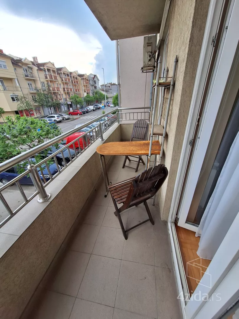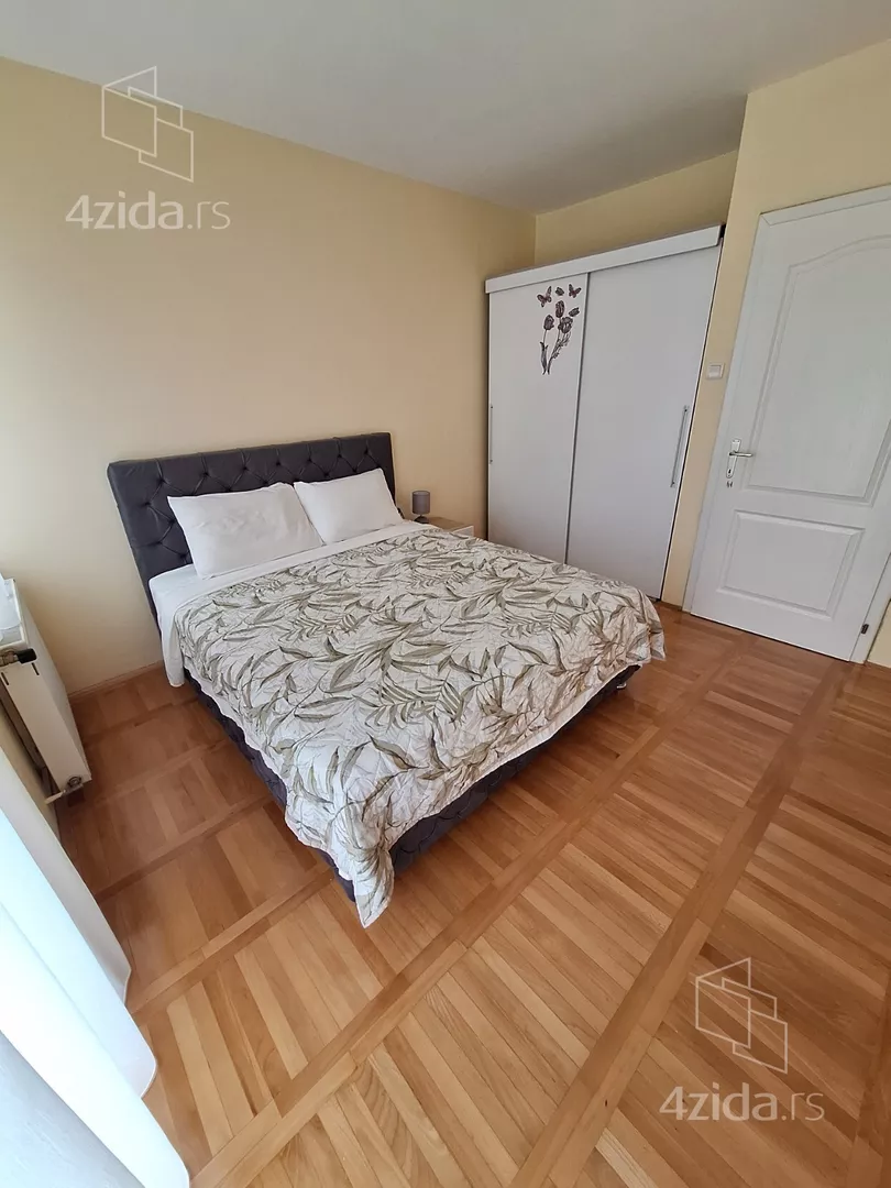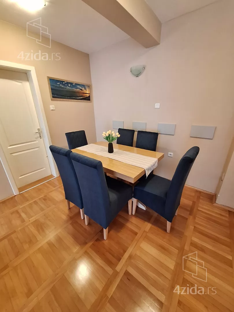 - Opremljenost: Namešteno - TV, klima, veš mašina, kuhinjski elementi, frižider, zamrzivač, šporet, rerna, ležaj, plakar, ugradni plakar