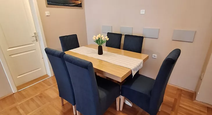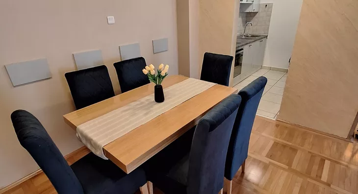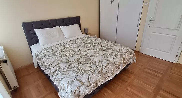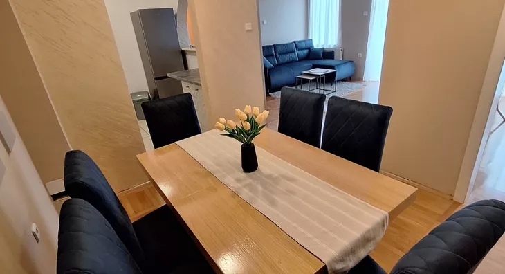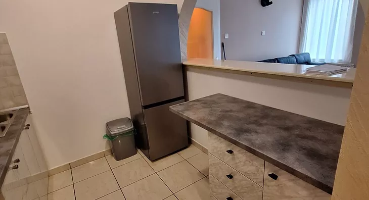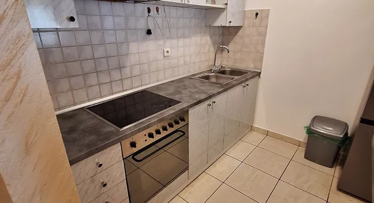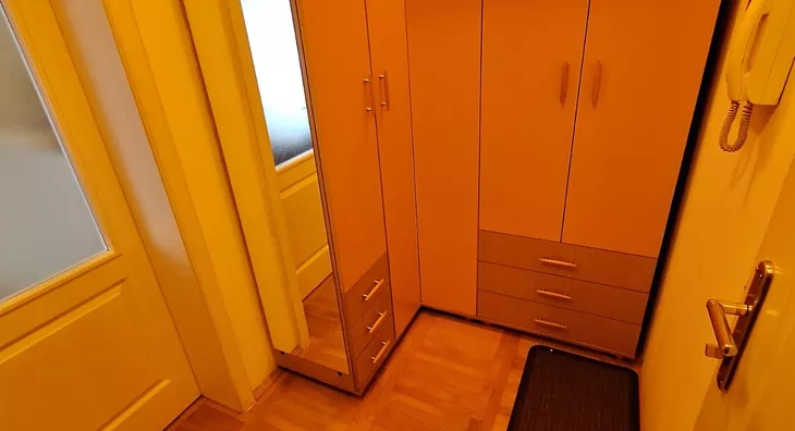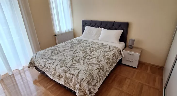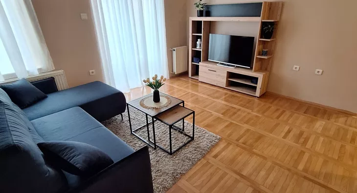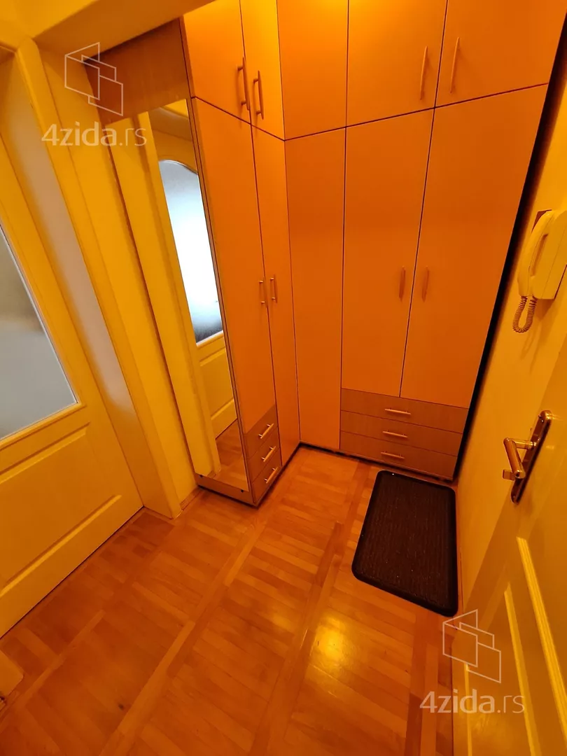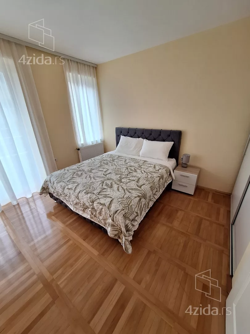 - Opremljenost: Namešteno - TV, klima, veš mašina, kuhinjski elementi, frižider, zamrzivač, šporet, rerna, ležaj, plakar, ugradni plakar