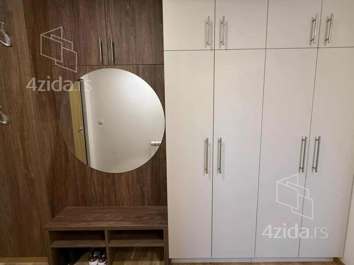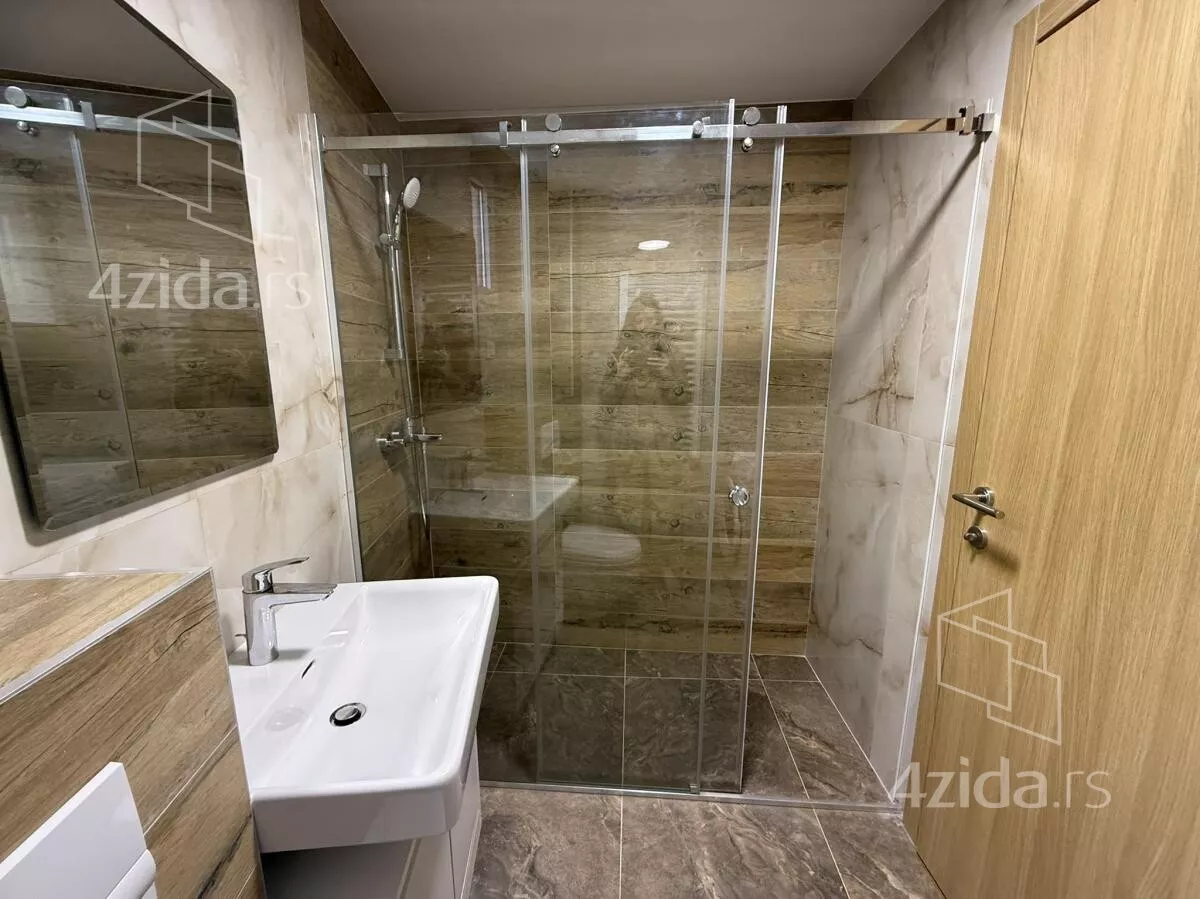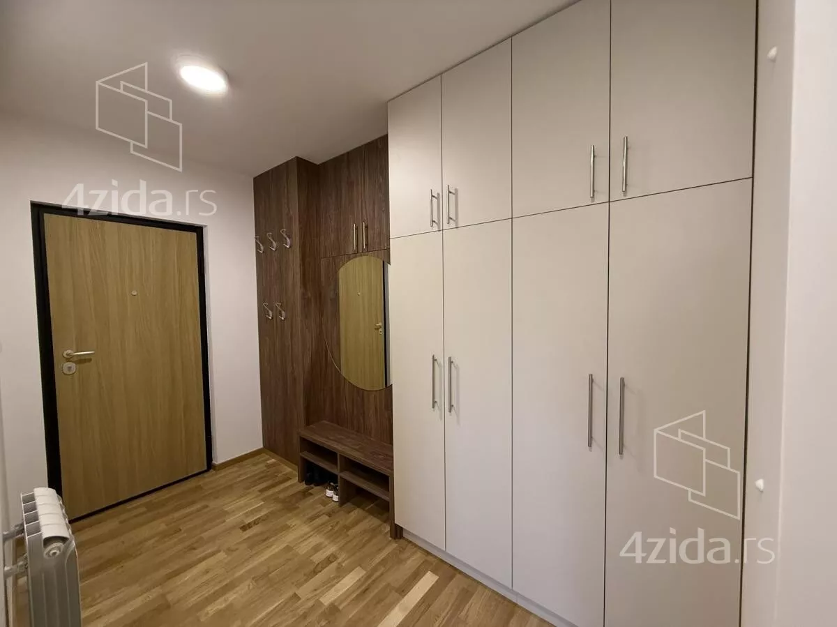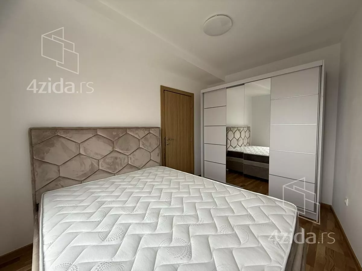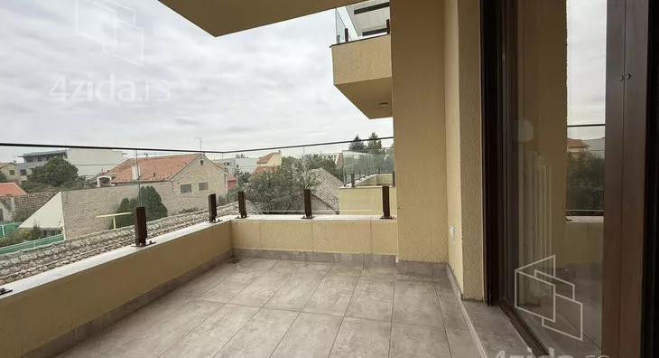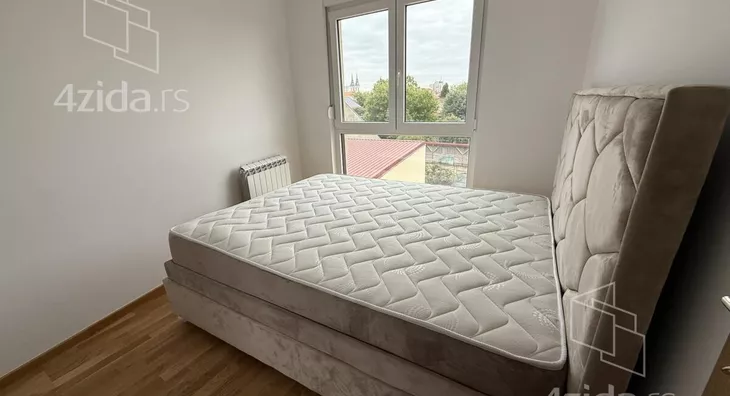 Stan u potpuno novoj zgradi sa potpuno novim nameštajem. Opremljen da u njega odmah možeš da se useliš. Mogućnost iznajmljivanja garažnog mesta po ceni od 50€.