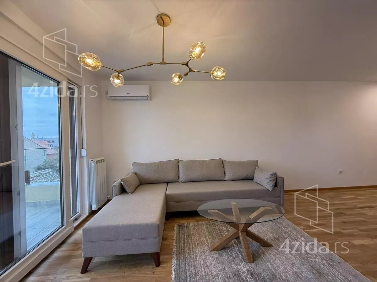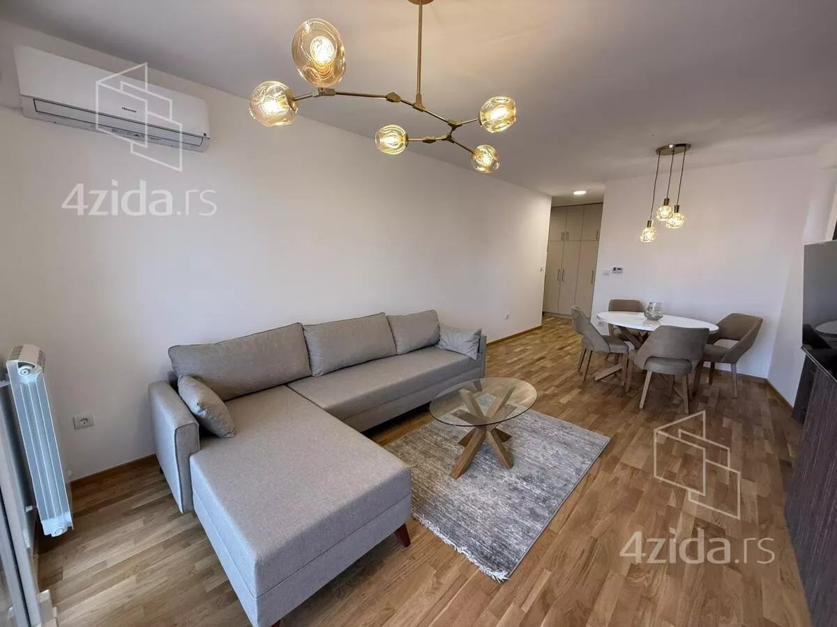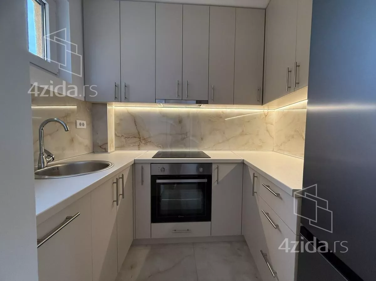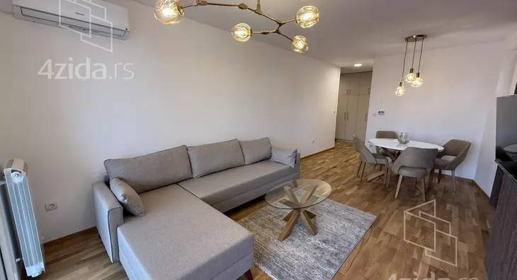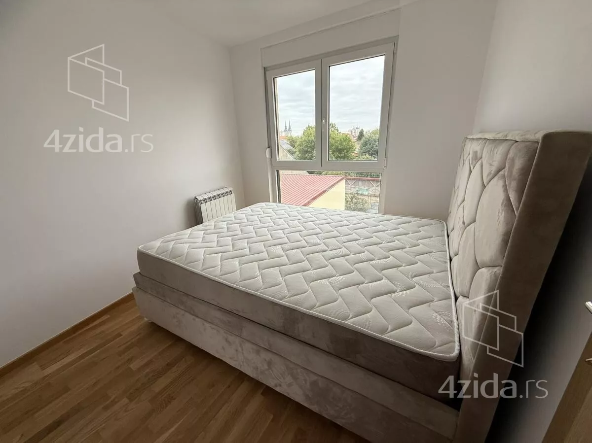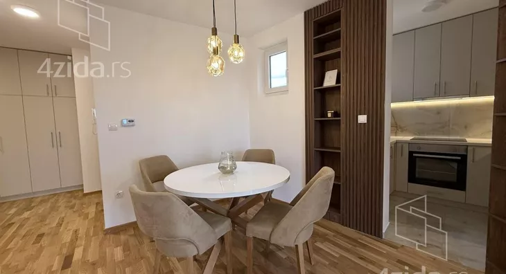 Stan u potpuno novoj zgradi sa potpuno novim nameštajem. Opremljen da u njega odmah možeš da se useliš. Mogućnost iznajmljivanja garažnog mesta po ceni od 50€.