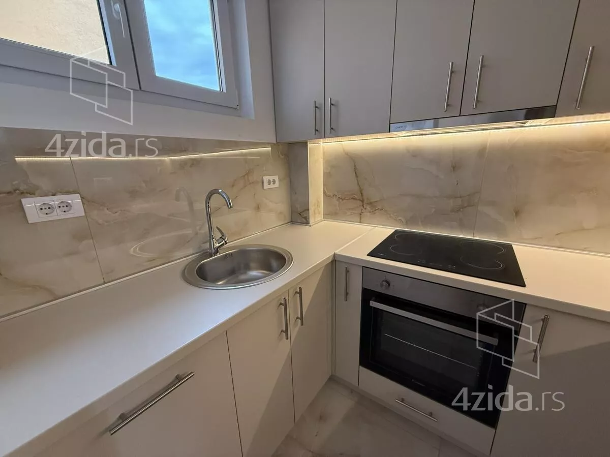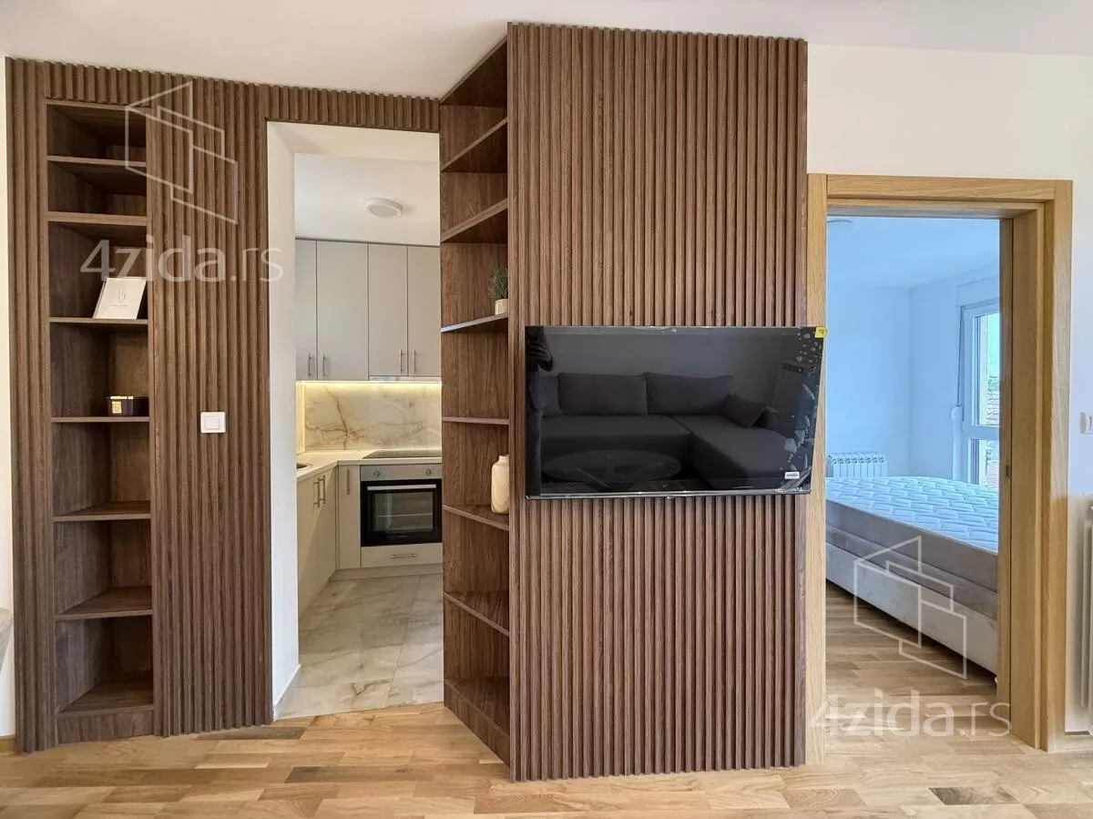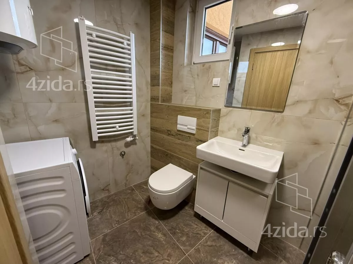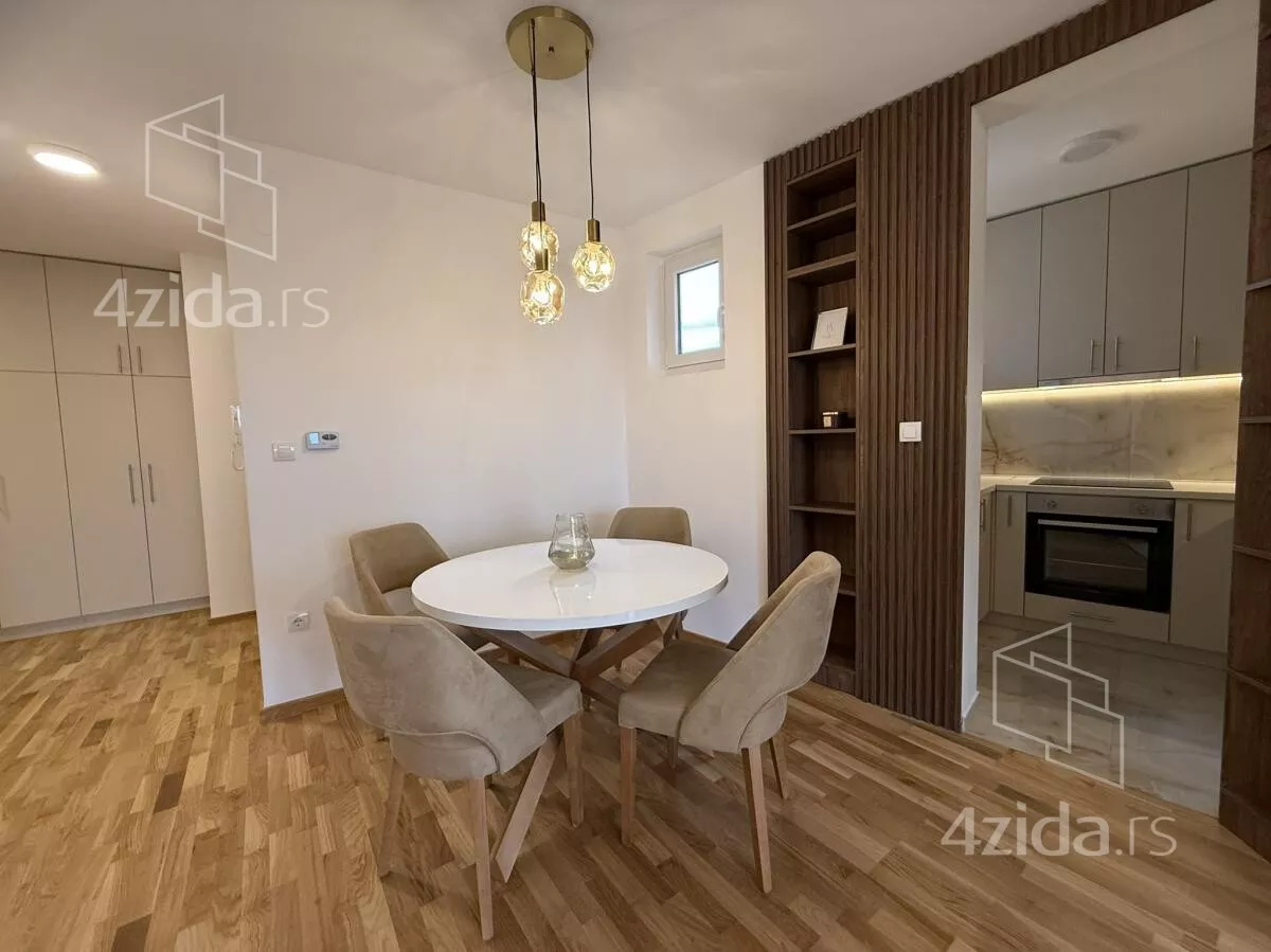 Stan u potpuno novoj zgradi sa potpuno novim nameštajem. Opremljen da u njega odmah možeš da se useliš. Mogućnost iznajmljivanja garažnog mesta po ceni od 50€.