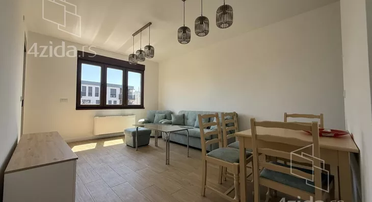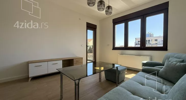 Stan u novoj zgradi u centru grada, potpuno namešten.