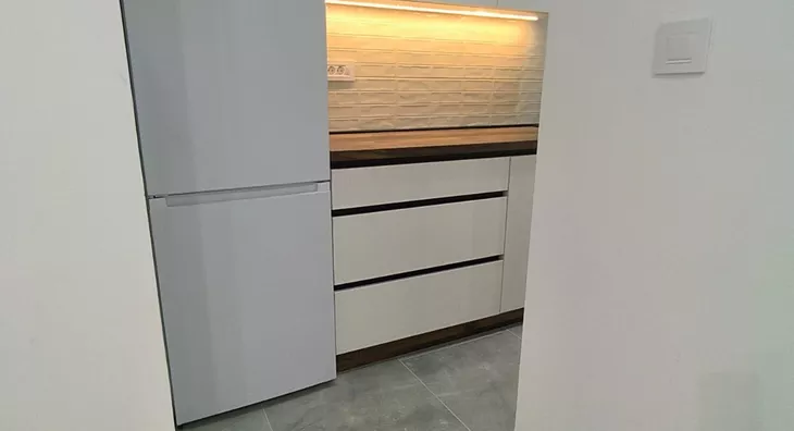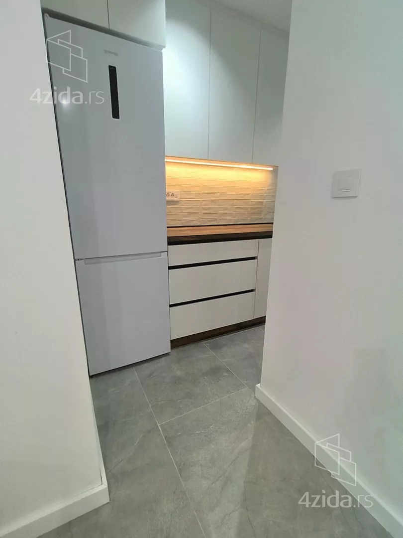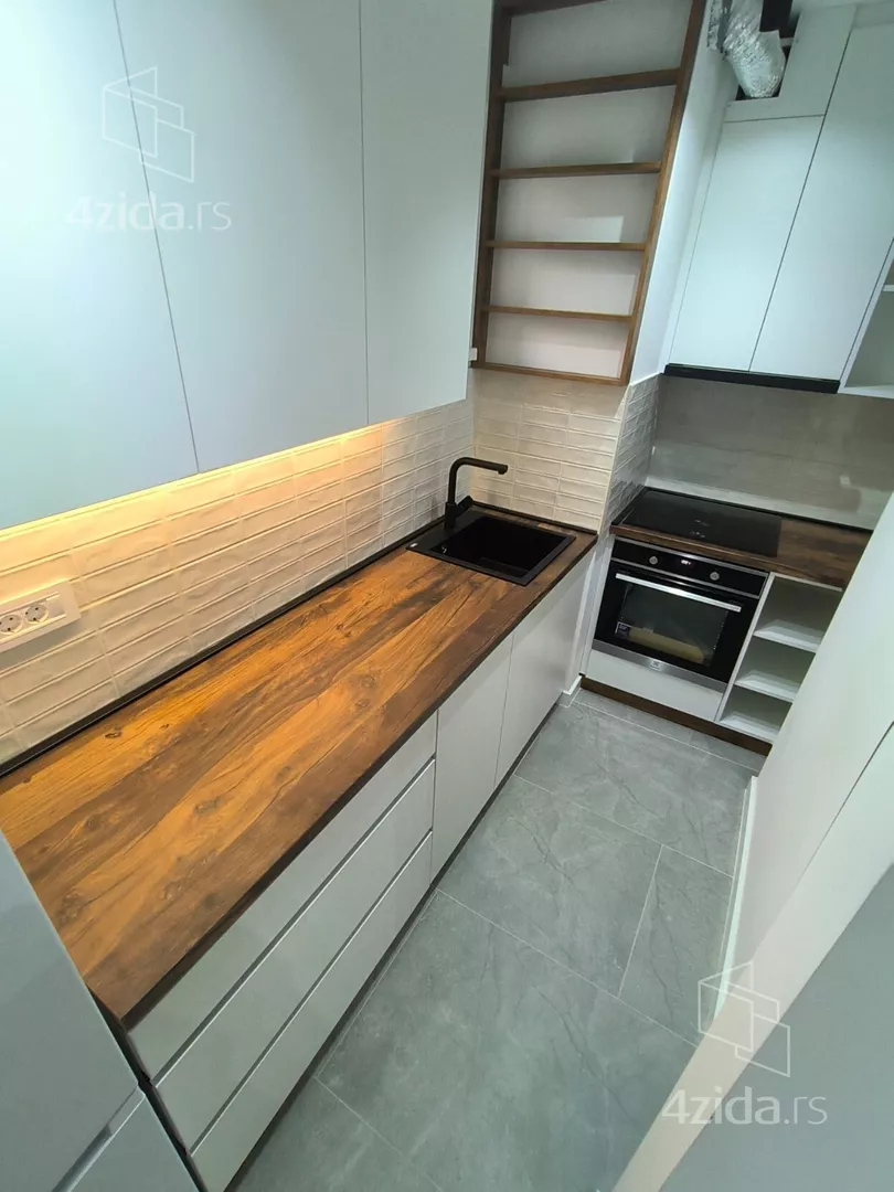 - Opremljenost: Polunamešteno - kuhinjski elementi, frižider, šporet, rerna, plakar, ugradni plakar