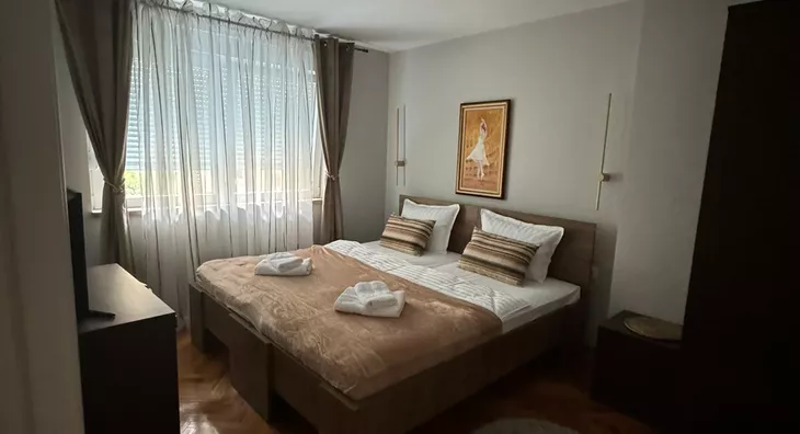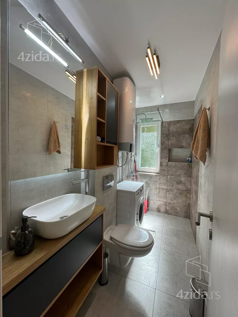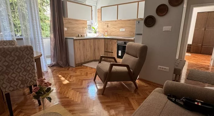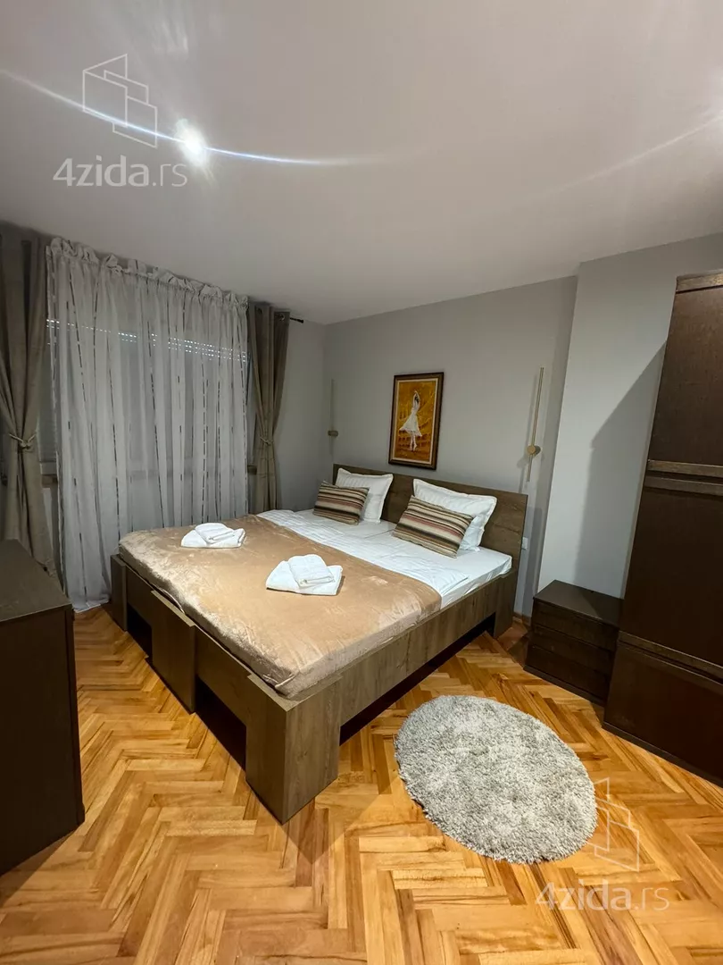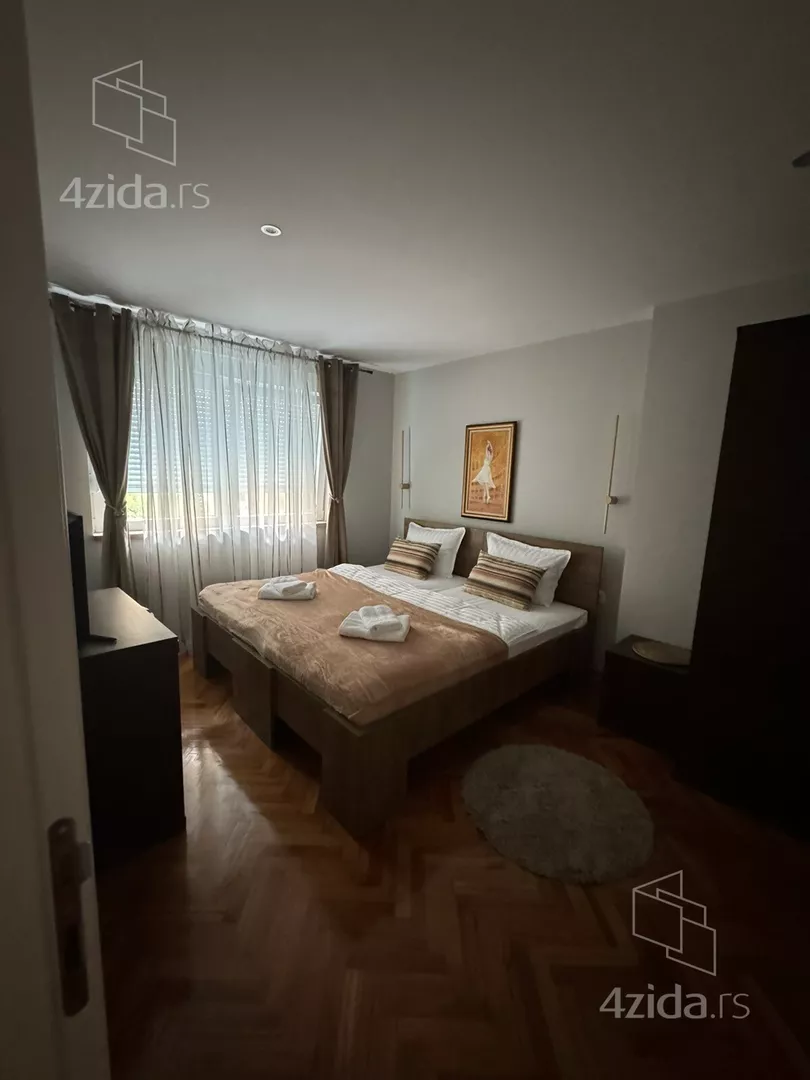 - Opremljenost: Namešteno - internet, TV, klima, veš mašina, kuhinjski elementi, frižider, zamrzivač, šporet, rerna, ležaj, plakar