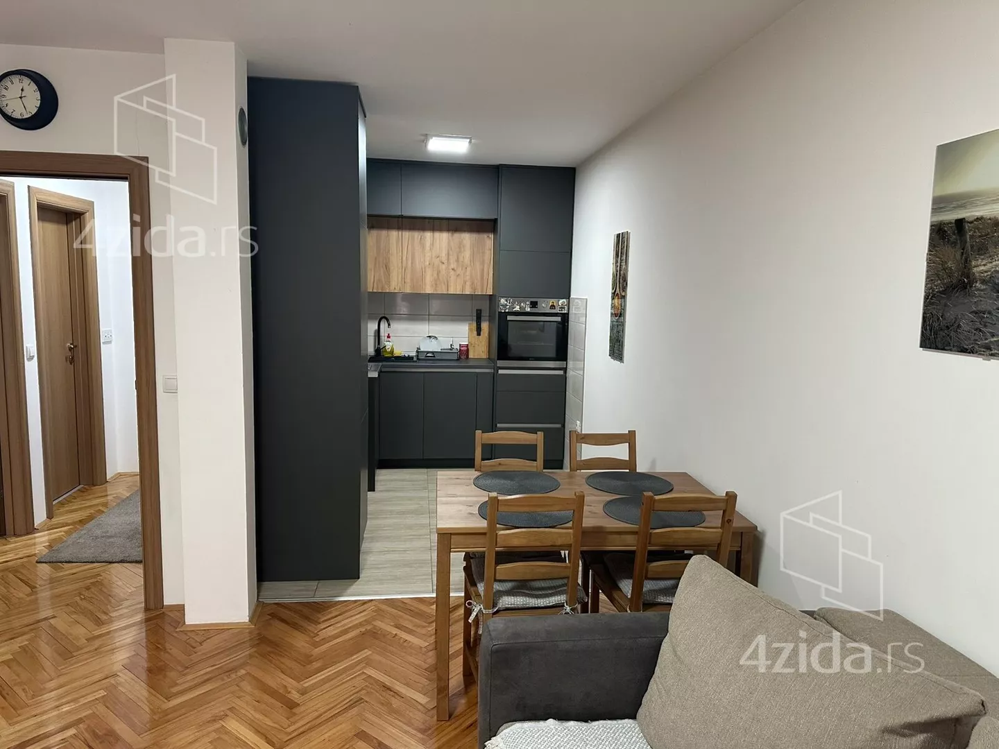 - Opremljenost: Namešteno - internet, TV, klima, veš mašina, kuhinjski elementi, sudo mašina, frižider, zamrzivač, mikrotalasna rerna, šporet, rerna, ležaj, plakar