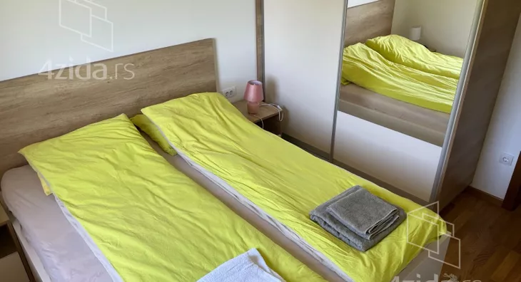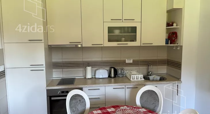 - Opremljenost: Namešteno - TV, klima, veš mašina, kuhinjski elementi, sudo mašina, frižider, zamrzivač, šporet, rerna, ležaj