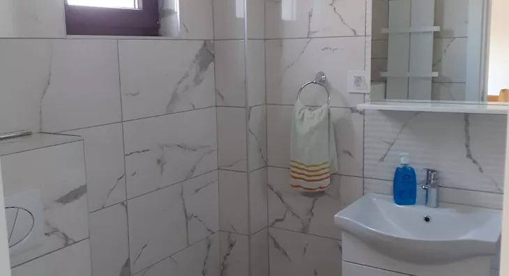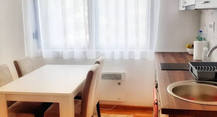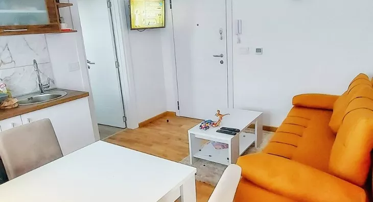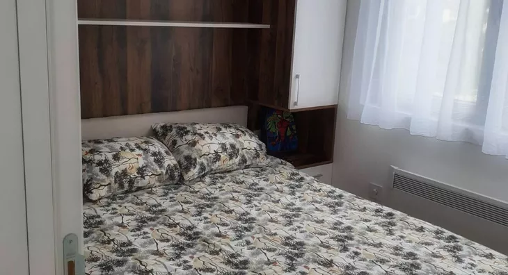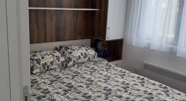 Stan ima jednu spavaću sobu sa bračnim krevetom, dnevnu sobu (tu je garnitura na razvlačenje), kuhinju sa trpezarijom i kupatilo. Stan ima i terasicu sa prelepim pogledom.