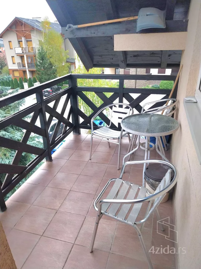 Izdaje se namešten stan koji se sastoji od dnevne i spavaće sobe, kupatila, terase i kuhinje. Ispred zgrade ima parking za stanare. Grejanje etažno, kablovska, internet. na 5 minuta pešačenja je centar, gondola, škole skijanja, restorani, marketi.