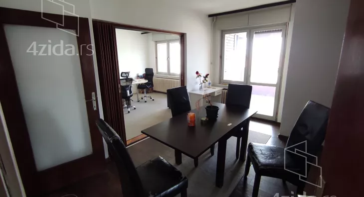 DN Real Estate vam predstavlja izuzetno komfioran, četvorosaban stambeno-poslovni prostor. Ukupne površine 105m2. Nalazi se u centru grada, nedaleko od Pravnog fakulteta. Stan se nalazi na 7. spratu zgrade, nije poslednji sprat. Na podu je parket,a izdaje se nenamešten uz mogućnost opremanja stana od strane vlasnika po potrebi zakupca. Sastoji se od ulaznog hodnika, prostrane dnevne sobe, tri spavaće sobe, zasebne trpezarije, kuhinje, predsoblja, kupatila i toaleta, kao i dve manje i jedne prostrane terase. Grejanje je centralno, a stan poseduje i klima uređaj. Zbog svoje funkcionalnosti i veličine odličan je izbor za kancelarije, salon, specijalističku kliniku i IT firmu i slične delatnosti.