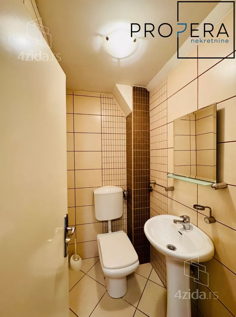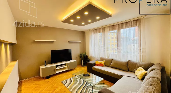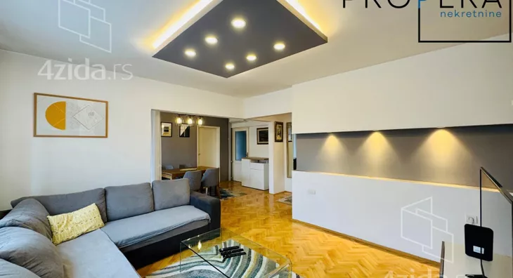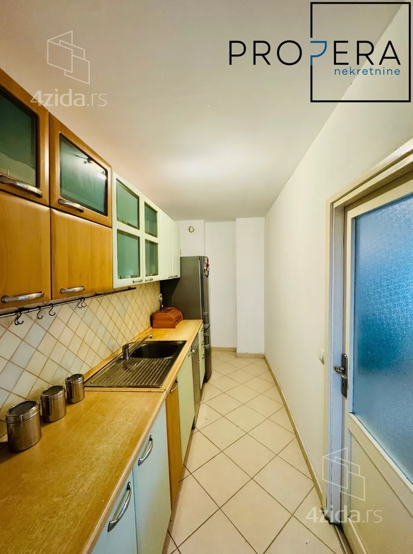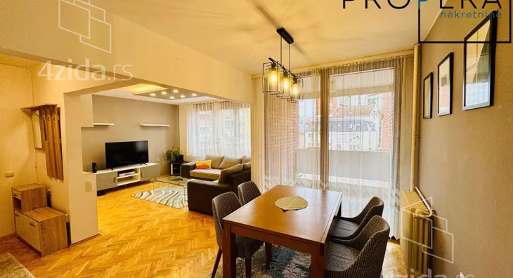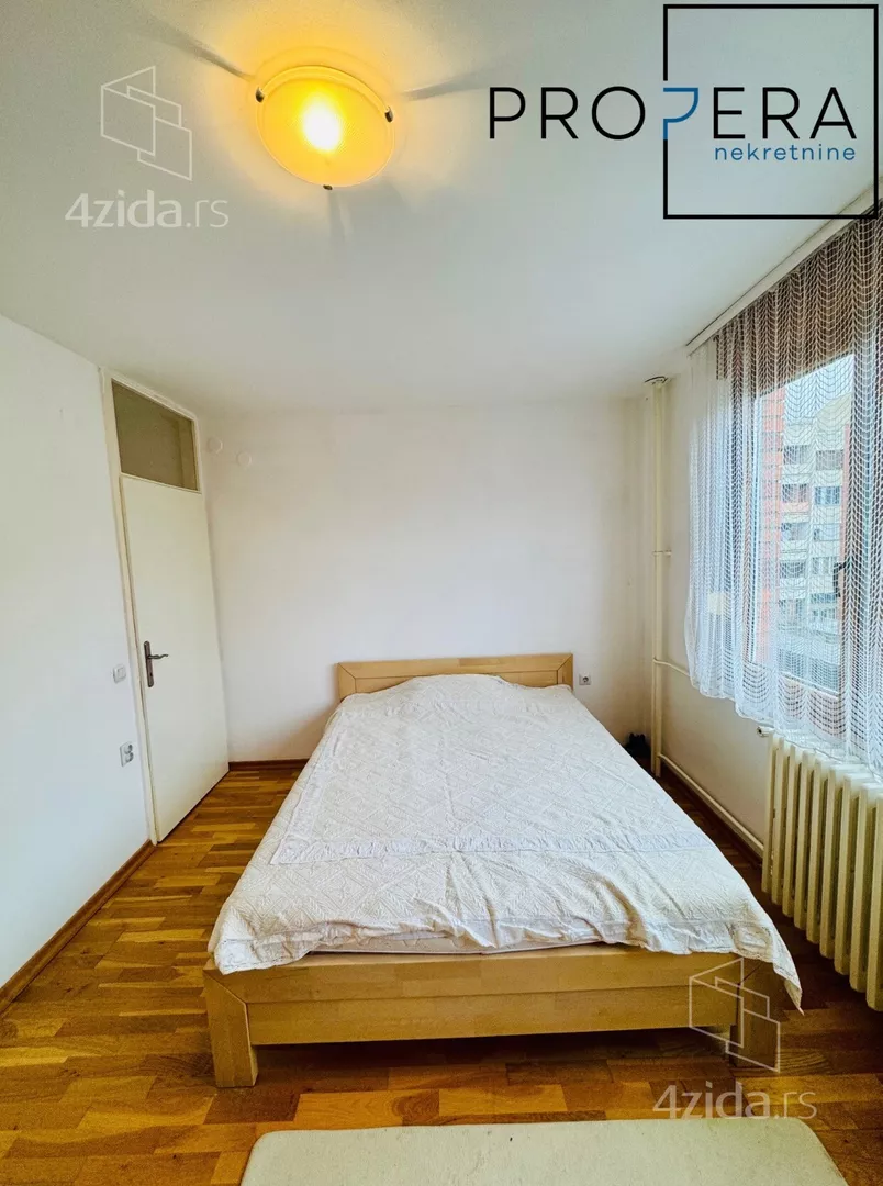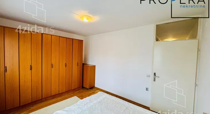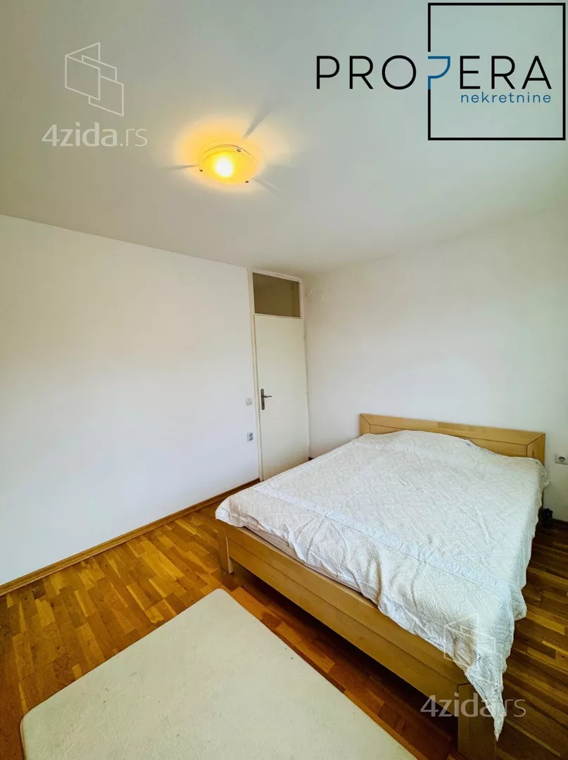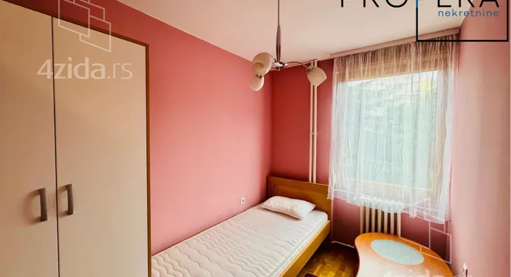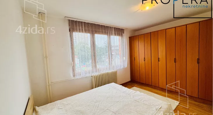 Izdaje se četvorosoban stan, ukupne površine 81 m2. Stan se sastoji od ulaznog hodnika, dnevne sobe sa trpezarijom, kuhinje, tri spavaće sobe, kupatila, toaleta, terase i lođe.