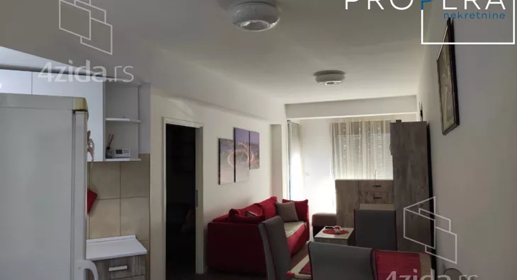 Izdaje se jednoiposoban stan, ukupne površine 43 m2. Stan se sastoji od ulaznog hodnika, dnevne sobe sa trpezarijom i kuhinjom, spavaće sobe, kupatila i terase.