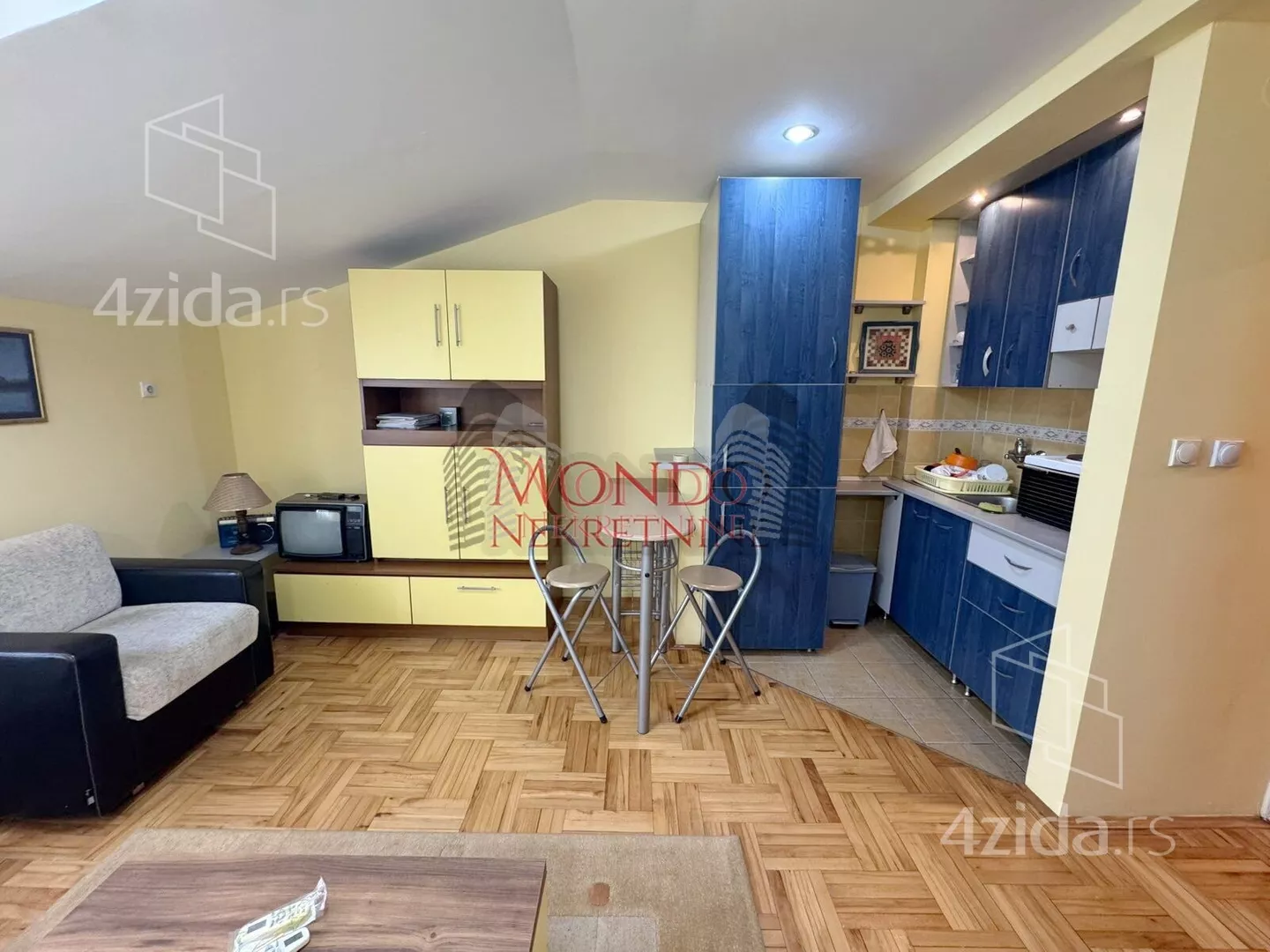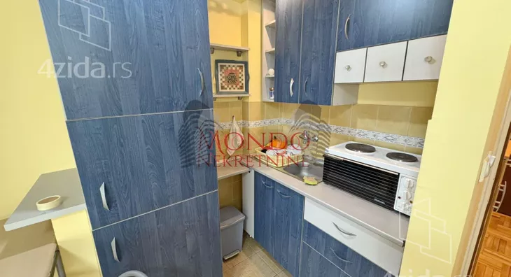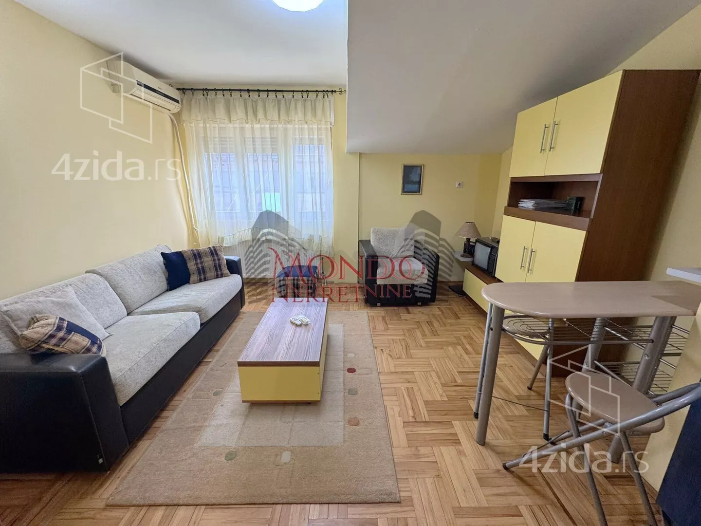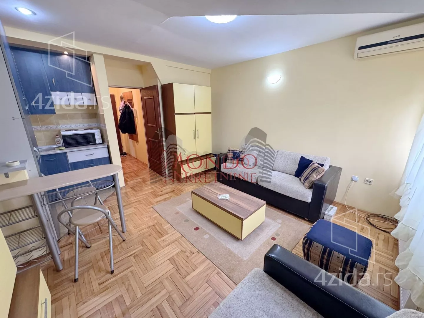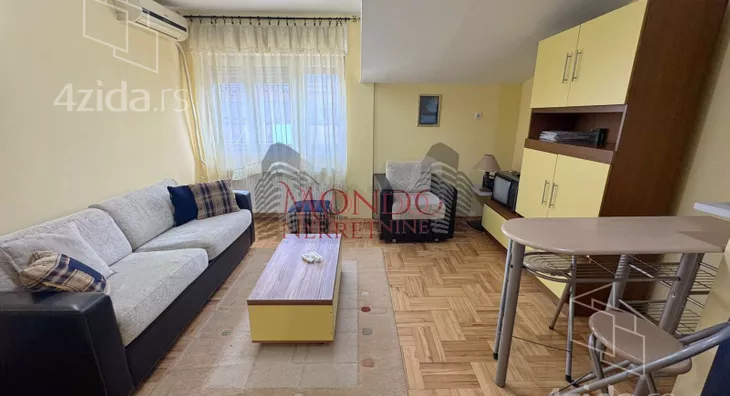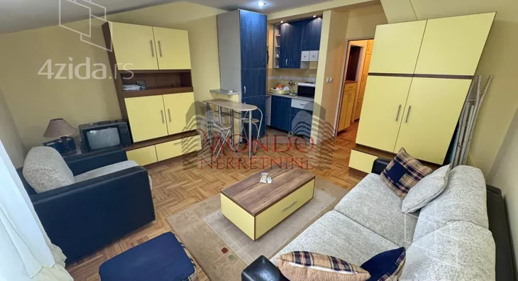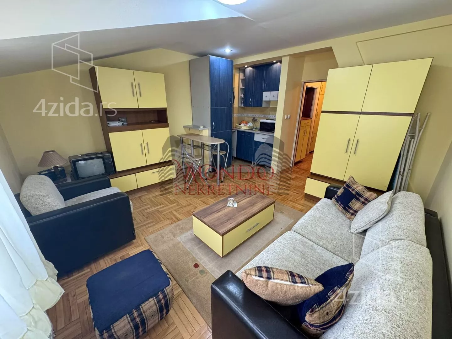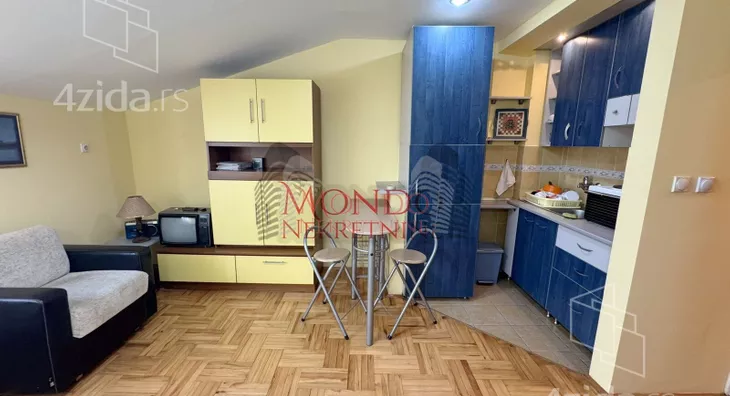 Stan se nalazi u stambenoj zgradi na III-spratu bez lifta, povrsine od 25m2 sa centralnim grejanjem.Sastoji se od dnenvog boravka sa kuhinjom i trpezarijom, hodnika i kupatila.Stan je kompletno opremljen i poseduje sve od tehnike. Izdaje se iskljucivo na duzi vremenski period, ozbiljnim zakupcima!