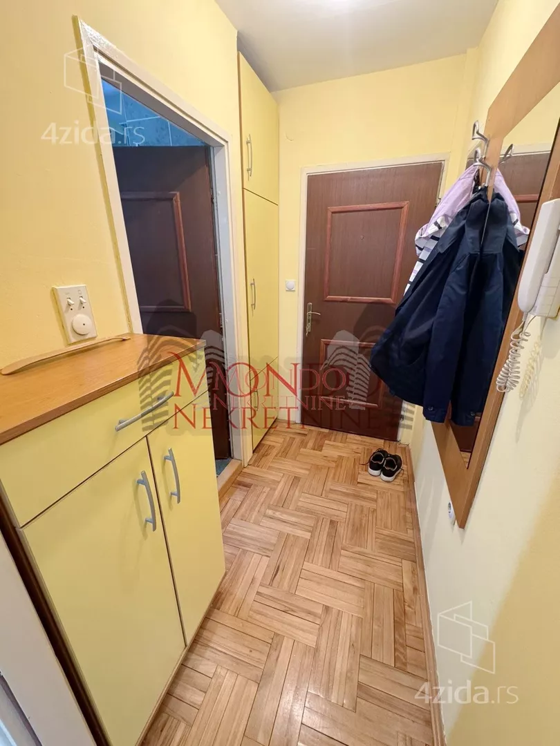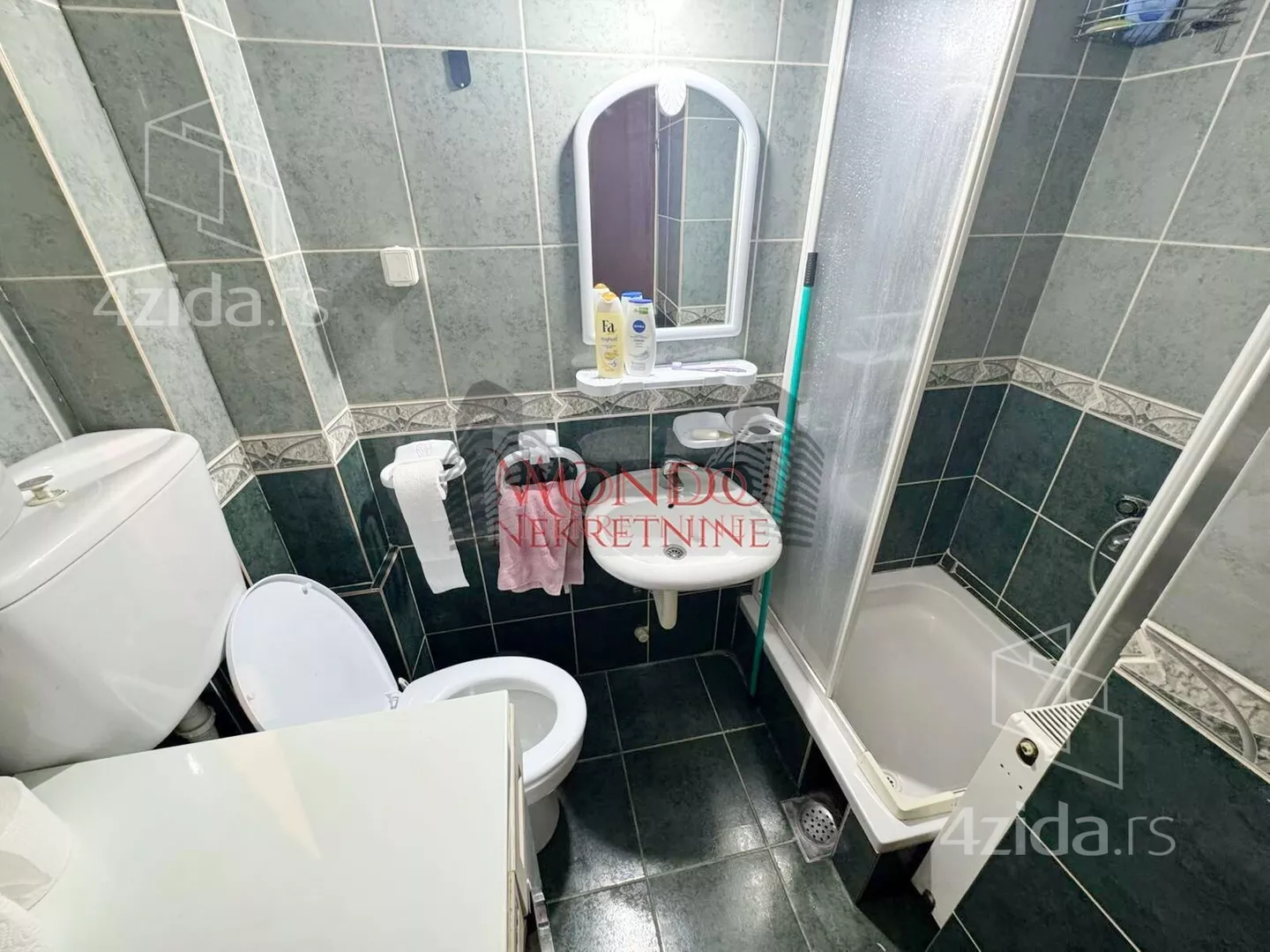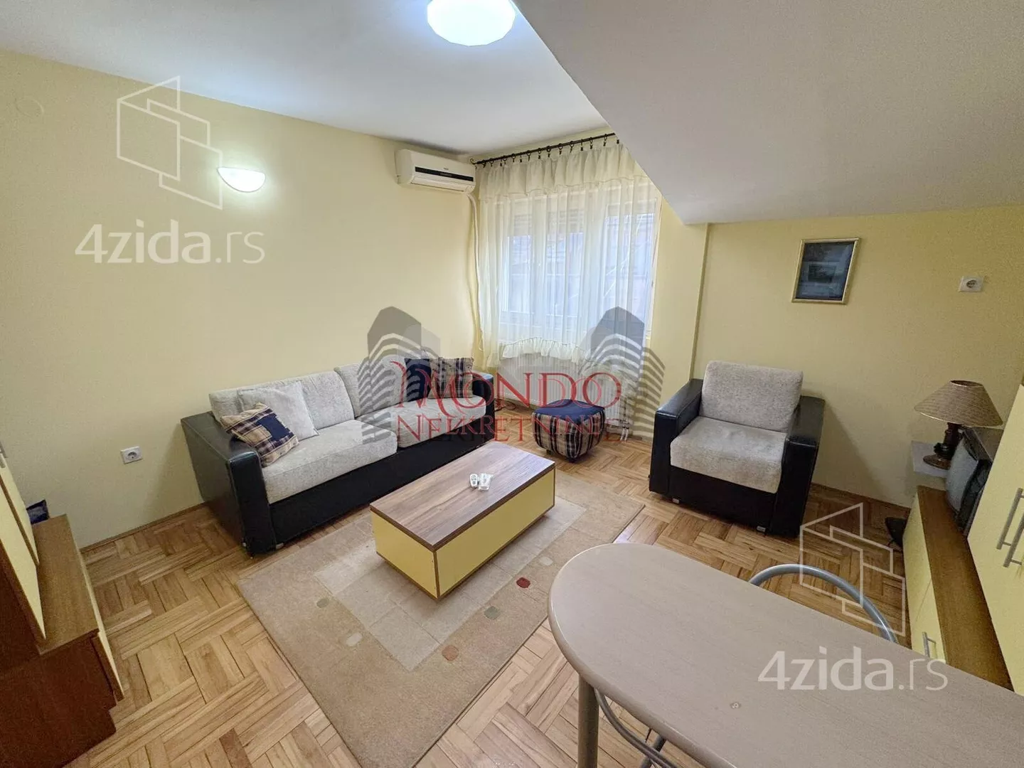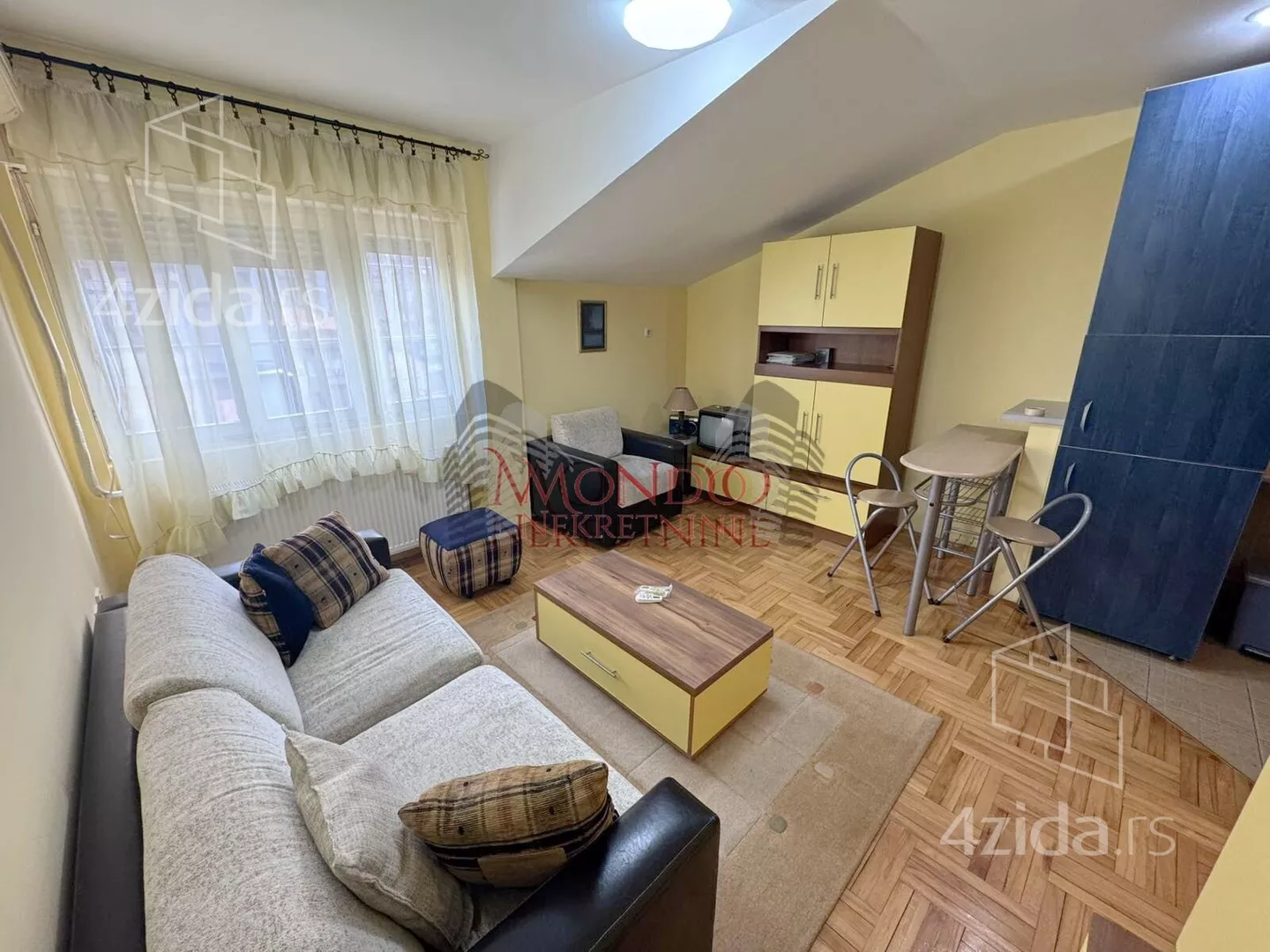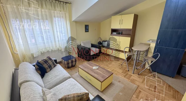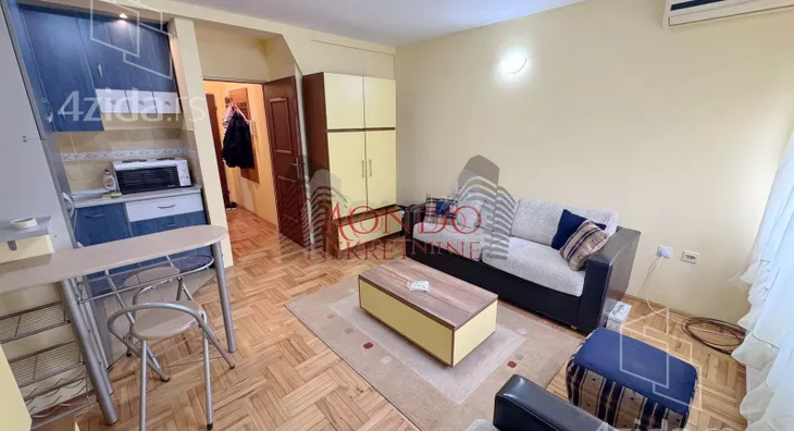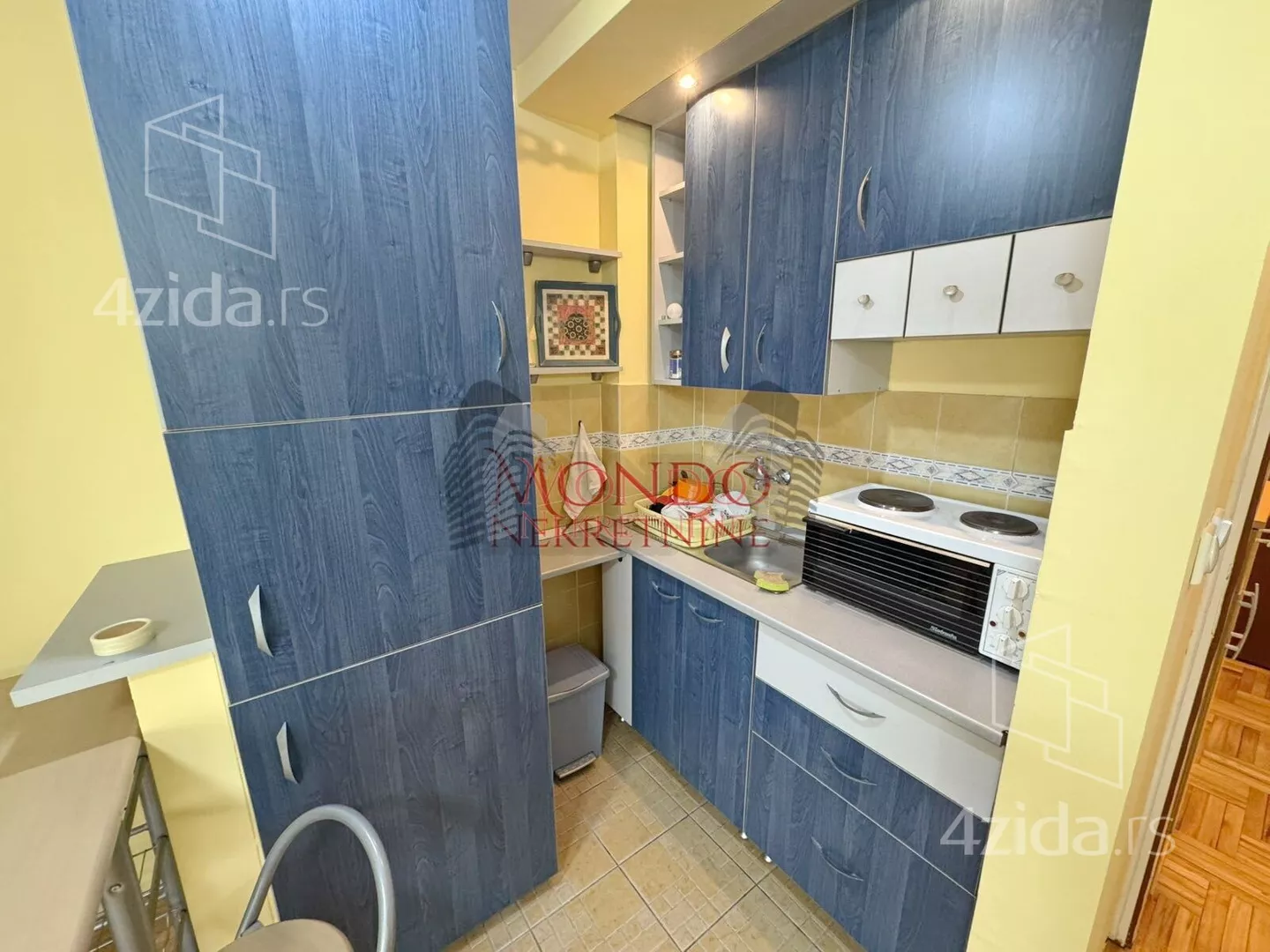 Stan se nalazi u stambenoj zgradi na III-spratu bez lifta, povrsine od 25m2 sa centralnim grejanjem.Sastoji se od dnenvog boravka sa kuhinjom i trpezarijom, hodnika i kupatila.Stan je kompletno opremljen i poseduje sve od tehnike. Izdaje se iskljucivo na duzi vremenski period, ozbiljnim zakupcima!