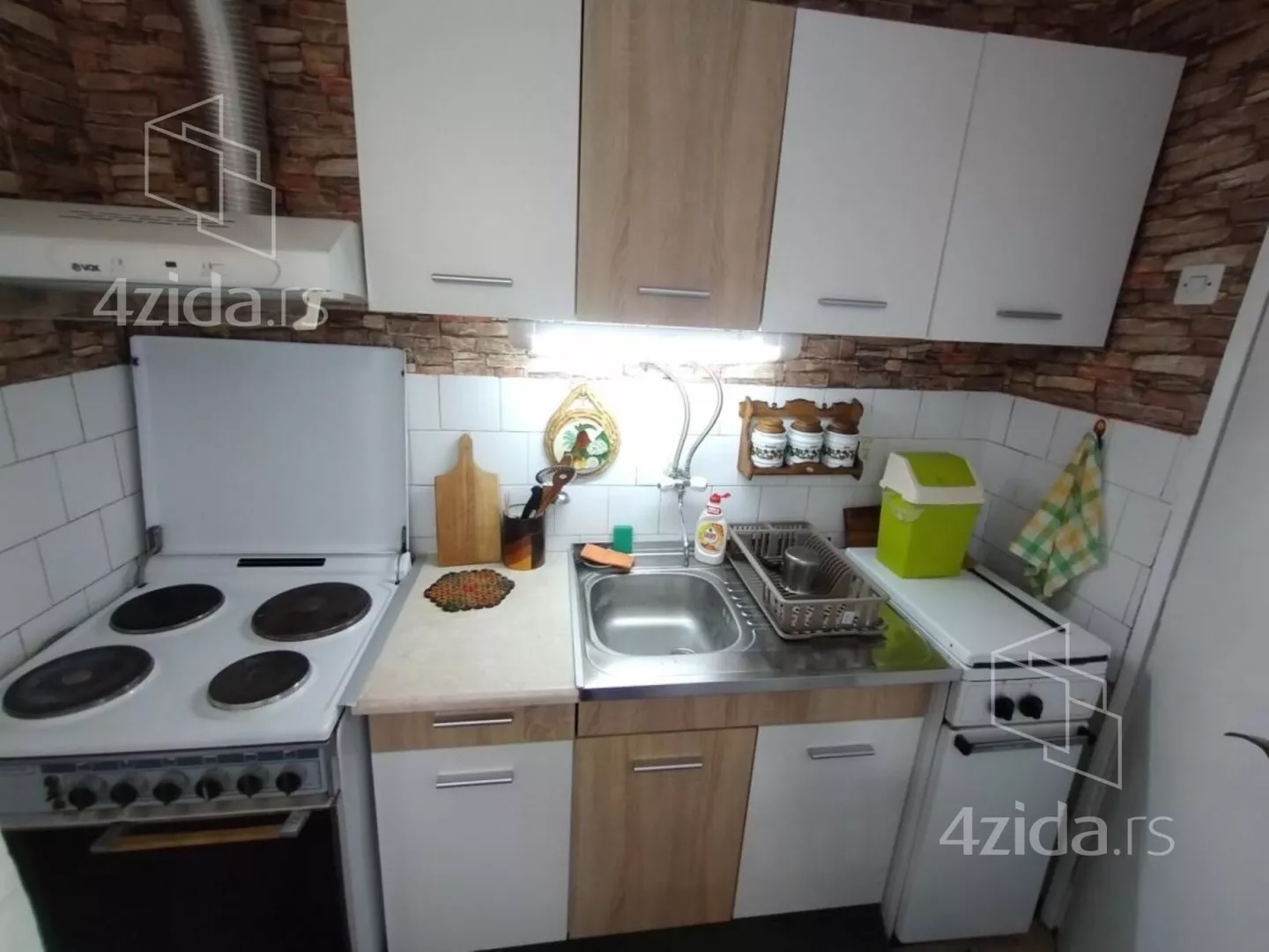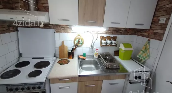 - Opremljenost: Namešteno - TV, klima, veš mašina, kuhinjski elementi, sudo mašina, frižider, zamrzivač, šporet, rerna, ležaj, plakar, ugradni plakar