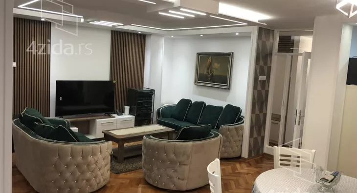 Izdaje se odličan, kompletno moderno opremljen trosoban stan u centru grada. Nalazi se na 4. spratu stambene zgrade. Stan je površine 85m2 i sastoji se od ulaznog hodnika, dnevne sobe, trpezarije i kuhinje, 2 spavaće sobe, 2 kupatila, terase, ostave i mogućnost korišćenja vešernice. Stan je kompletno opremljen novim nameštajem i uređajima. Stan se nalazi na odličnoj lokaciji i u blizini se nalaze marketi, pekare, piljare, apoteke i sve što je neophodno za svakodnevni život. Agencijska usluga za zakupce ovog stana je 50% od prve mesečne zakupnine, koja se plaća jednokratno.
