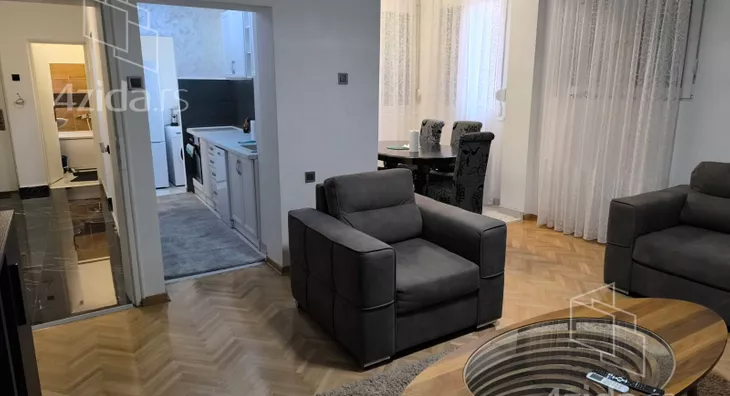 - Opremljenost: Namešteno - TV, klima, veš mašina, kuhinjski elementi, frižider, mikrotalasna rerna, šporet, rerna, ležaj, plakar, ugradni plakar