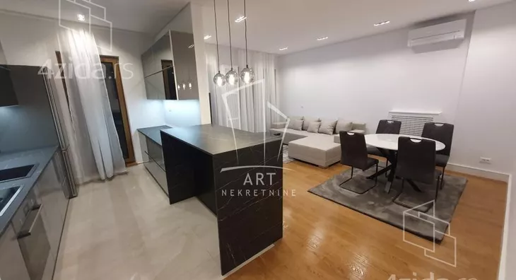 Ekskluzivan prostor u luksuznom stambeno-poslovnom objektu, spoj moderne arhitekture, vrhunskog kvaliteta i izuzetne lokacije. Prostor je inspirisan modernim dizajnom, urbanim i luksuznim stilom života. Kompletno je opremljen najsavremenijim nameštajem i tehnikom, osmišljen sa ciljem da omogući uživanje u komforu sopstvenog doma. Od dodatnih sadržaja, na raspolaganju su zatvoren bazen od 30 m, spa-centar, teretana, salon za masažu, slana soba, usluge recepcije i obezbeđenja 24/7, usluge parkiranja i pranja vozila. Po strukturi dvosoban, poseduje veliki dnevni boravak, spavaću sobu, kupatilo, terasu, ostavu od 4 m2. Garažno mesto je uračunato u cenu. Izuzetan komforan stan, kompletno namešten za život na odličnoj lokaciji. Agencijska provizija 50% vrednosti jedne mesečne zakupnine Agent: Olivera Bjekić, br. licence:4178 “Art nekretnine“ d.o.o. Beograd. Reg. br.339 011... (prikaži broj telefona) OB05 .