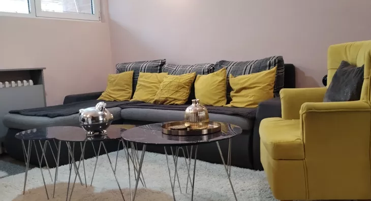 🏡 Kompletno namešten – TV, veš mašina, kuhinjski elementi, frižider, zamrzivač, mikrotalasna rerna, rerna, šporet, francuski ležaj, plakari, ugradni plakar, komode, ugaona garnitura i još mnogo toga.