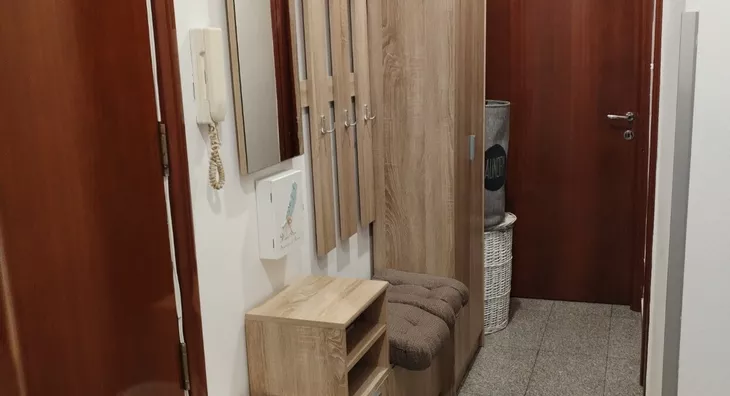 - Opremljenost: Namešteno - internet, TV, klima, veš mašina, kuhinjski elementi, frižider, zamrzivač, mikrotalasna rerna, šporet, rerna, ležaj, plakar, ugradni plakar
