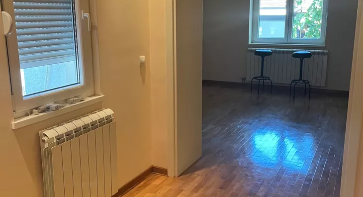 - Opremljenost: Polunamešteno - kuhinjski elementi, frižider, šporet