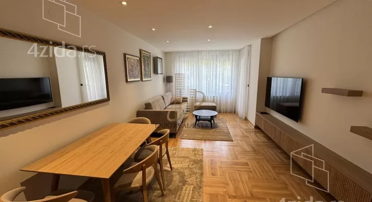 Stan je kompletno opremljen nameštajem po meri i vrhunskim brendovima bele tehnike, što omogućava maksimalan komfor i funkcionalnost. Prostran dnevni boravak sa trpezarijom i kuhinjom izlazi na terasu orijentisanu ka mirnom dvorištu, pružajući potpuni mir i privatnost. Stan je izuzetno svetao i prozračan, klimatizovan i spreman za useljenje.