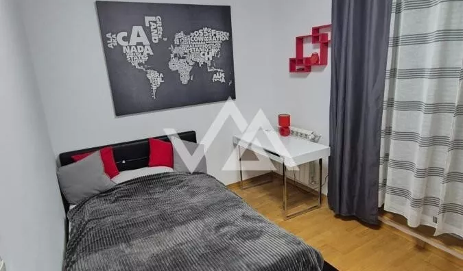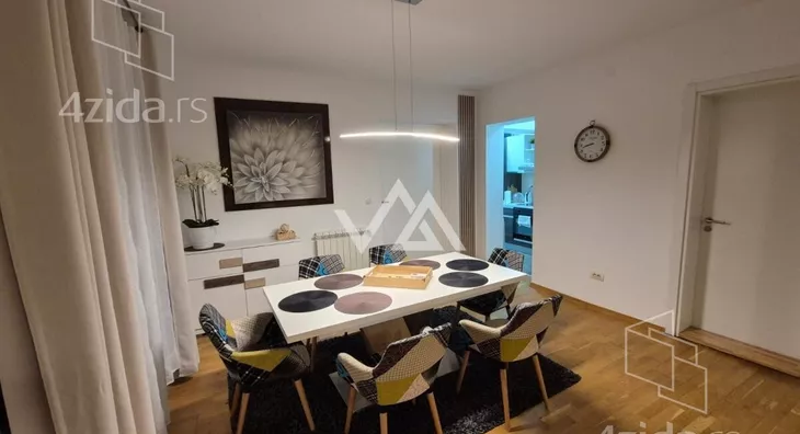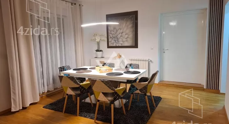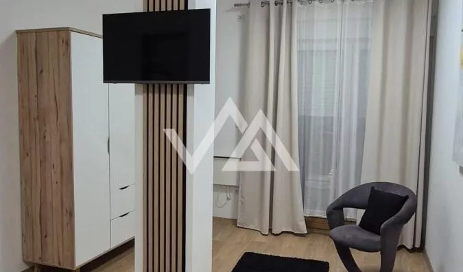 - Opremljenost: Namešteno - internet, interfon, TV, klima, veš mašina, sudo mašina, frižider, rerna, ležaj, plakar