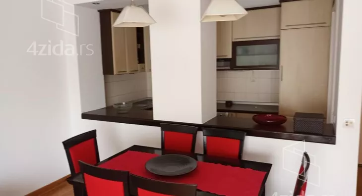 Stan je potpuno opremljen i moderno uređen, sa svim neophodnim uređajima i nameštajem.Dnevna soba je velika i prostrana, a u spavaćoj sobi je ugradni plakar, kao i u hodniku . Kuhinja je nova i moderna , sa mašinom za sudove, šporetom i frižiderom.