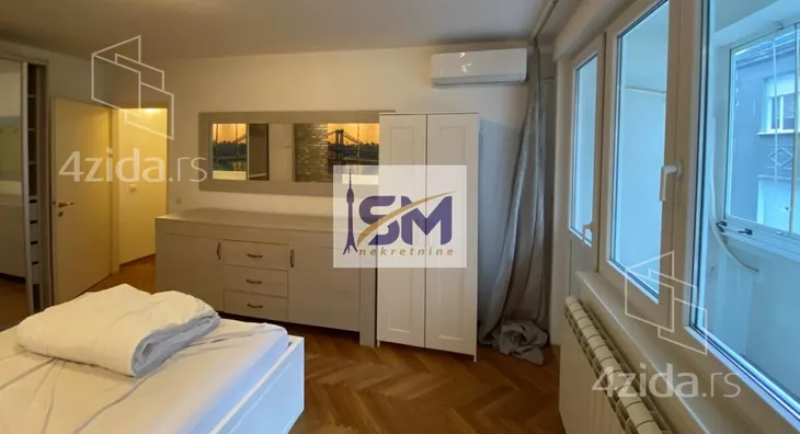 - Opremljenost: Namešteno - internet, interfon, klima, veš mašina, sudo mašina, frižider, rerna, ležaj, plakar, kanalizacija