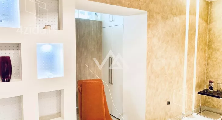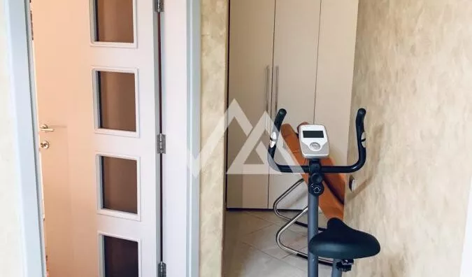 Садржи: дневну собу, трпезарију са кухињом (Veneta Cucine), спаваћу собу (king size кревет), купатило са туш кабином и балкон. Потпуно опремљен – Smart TV, брз интернет (300 Mbps), машина за прање веша, инвертер клима, LED расвета, италијански намештај.