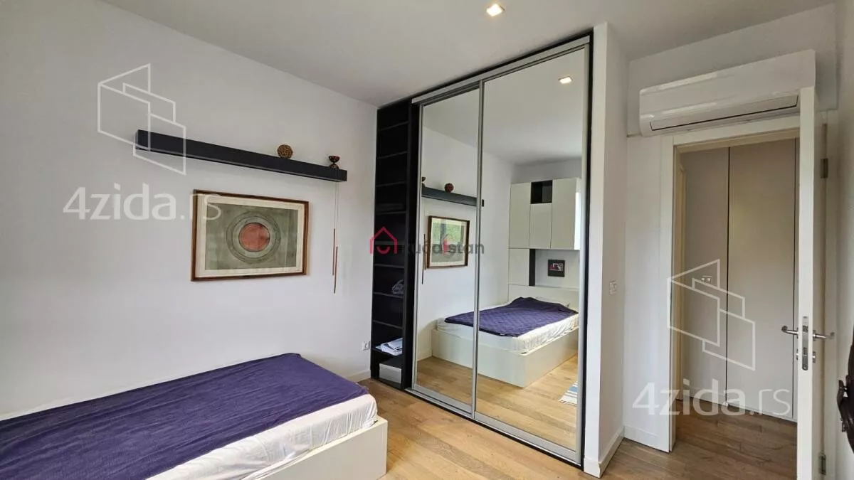 Stan je uređen vrhunskim materijalima i nameštajem, sa akcentom na luksuz, funkcionalnost i eleganciju. U cenu zakupa uključeno je jedno garažno mesto i jedno parking mesto.