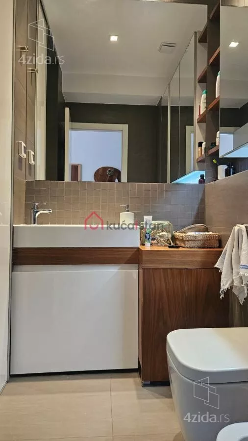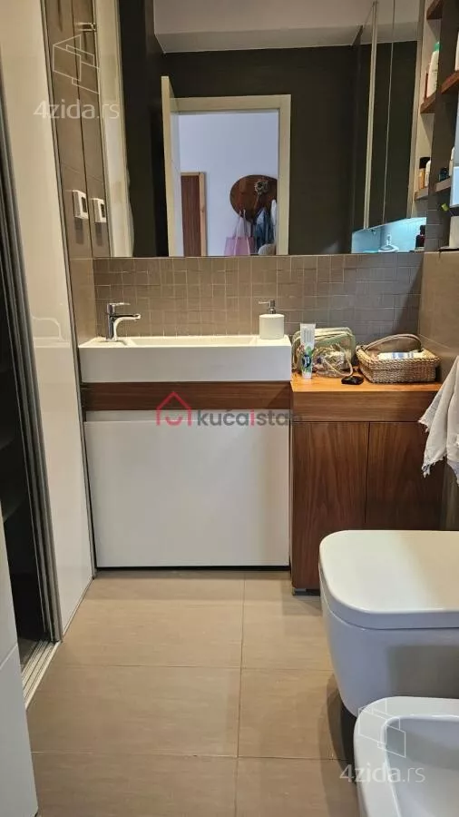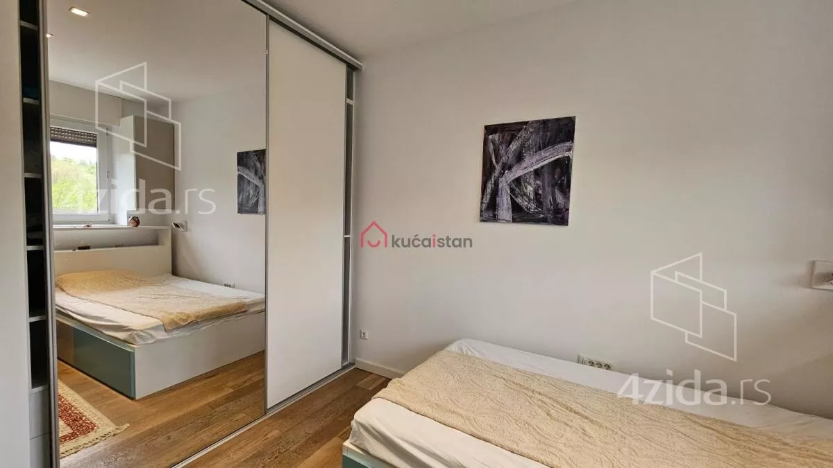 - Opremljenost: Namešteno - internet, interfon, TV, klima, veš mašina, sudo mašina, frižider, rerna, ležaj, plakar