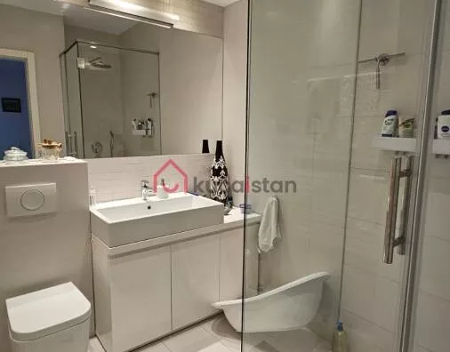 The lower level consists of a large living room, dining area, and a modern bathroom. The upper level features three spacious bedrooms, each equipped with air conditioning, along with two additional bathrooms. In total, the apartment has three bathrooms, providing maximum comfort and privacy.