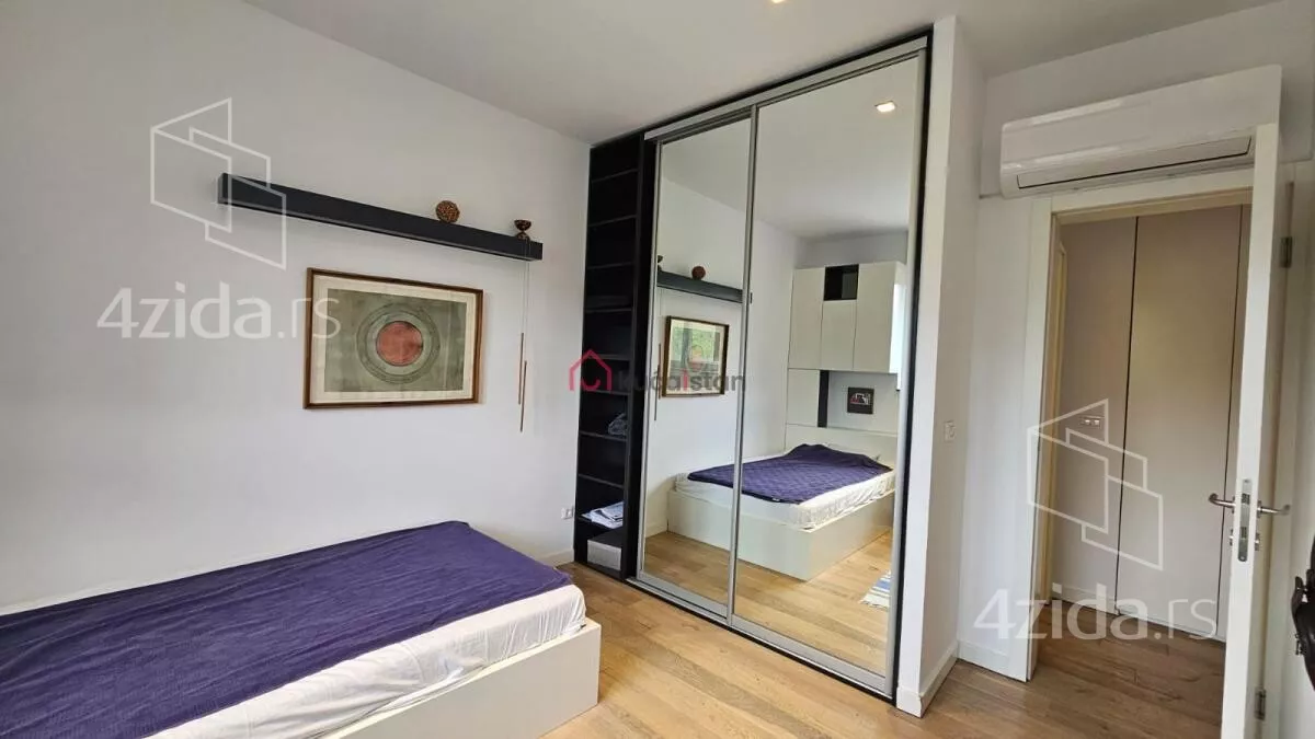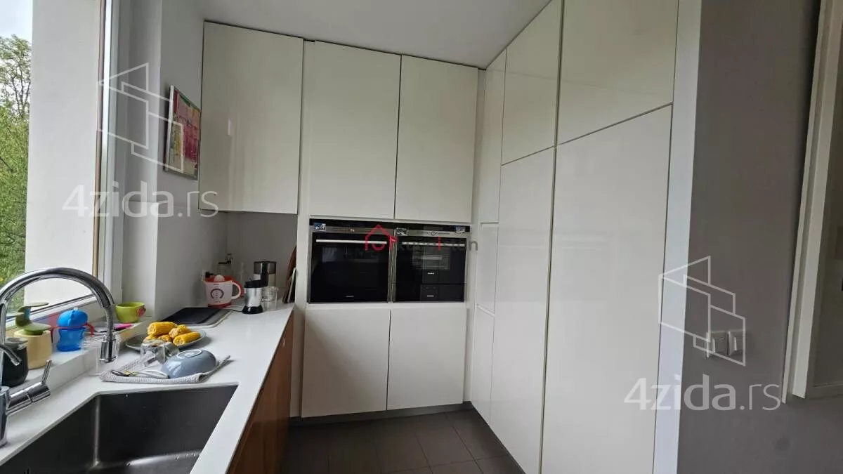 - Opremljenost: Namešteno - internet, interfon, TV, klima, veš mašina, sudo mašina, frižider, rerna, ležaj, plakar