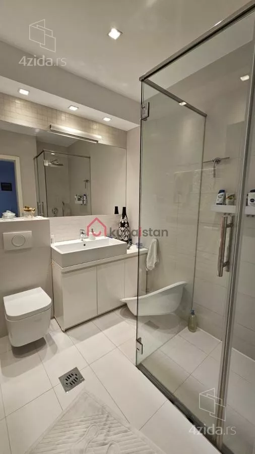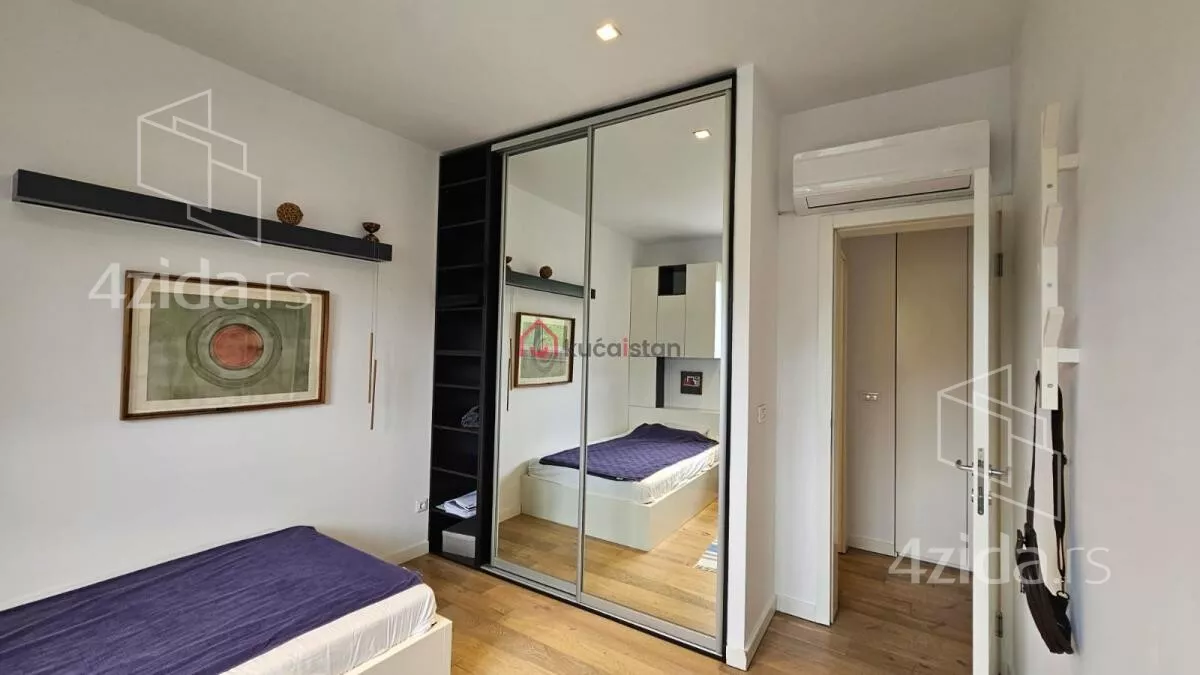 Stan je uređen vrhunskim materijalima i nameštajem, sa akcentom na luksuz, funkcionalnost i eleganciju. U cenu zakupa uključeno je jedno garažno mesto i jedno parking mesto.