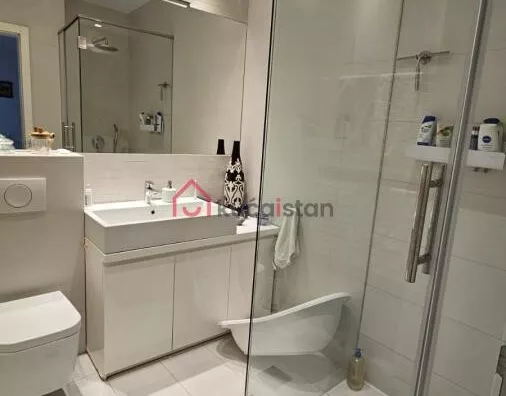 The lower level consists of a large living room, dining area, and a modern bathroom. The upper level features three spacious bedrooms, each equipped with air conditioning, along with two additional bathrooms. In total, the apartment has three bathrooms, providing maximum comfort and privacy.