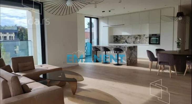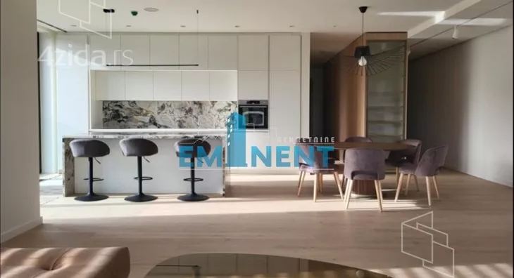 Ekskluzivan, deluxe sređen stan u veoma kvalitetnoj novogradnji, izuzetno moderno, kvalitetno i luksuzno opremljen, vrlo komforan, poseduje prostran open space - dnevni boravak, trpezarija i kuhinja sa puno svetlosti zahvaljujući velikim prozorima od poda do plafona, tri spavaće sobe, jedna soba je master sa sopstvenim kupatilom, dodatno kupatilo, toalet, dve prostrane terase, gardeorber, vešeraj. Grejanje i hlađenje omogućeno je pomoću toplotnih pumpi. Zgrada je vrlo kvalitetna, pod fizičko-tehničkim obezbeđenjem 24/7, a poseduje i recepciju sa portirom. U cenu je uračunato garažno mesto. Agencijska provizija se plaća u iznosu od 50% + PDV dogovorene jednomesečne zakupnine za period zakupa u trajanju do 12 meseci ID oglasa: 21280.