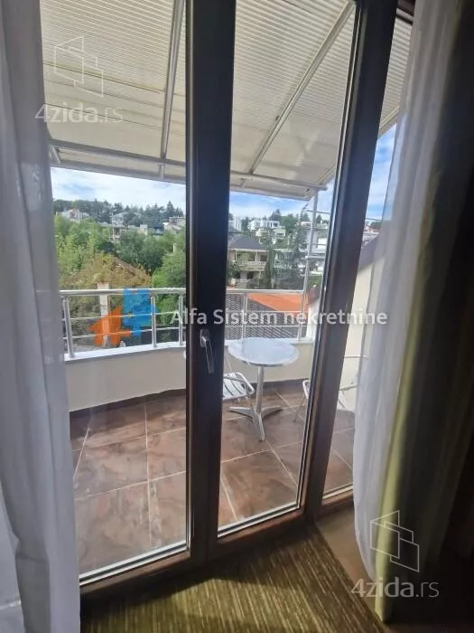 Izdaje se luksuzan dupleks površine 160 m2 u mirnoj ulici na Dedinju, u blizini restorana Dedinje. Nalazi se na prvom spratu manje stambene zgrade sa zajedničkim dvorištem i bazenom na korišćenje.