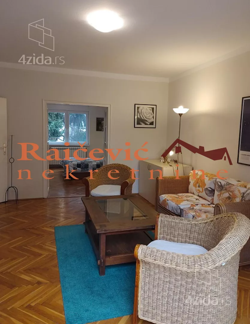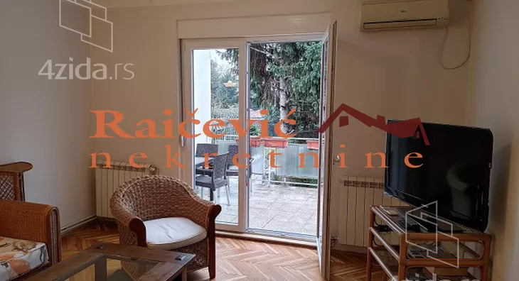 Dedinje, Jezdiceva, 2.0 stan u kuci, 70 m2 sa terasom, I od I sprata, eg (klima), bez lifta, interfon, ktv, klima, namesten, useljiv od 01.08., uknjizen na 70 m2, depozit obavezan.