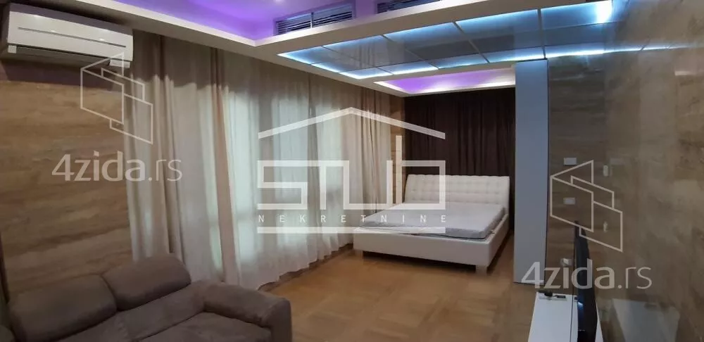 Priuštite sebi ekskluzivitet i budite stanar prelepog studia koji je sam na ovom spratu i poseduje izuzetnu teerasu površine 110m2 i pripada iključivo ovom stanu.Stan je open space,ima izdvojenu kuhinju kao i savremeno opremljeno kupatilo.U cenu stana ulaze:topla voda,video nadzor,korišćenje bazena,čišćenje zgrade.Stan poseduje garažu i ostavu.Ceo stan je u staklu.Kućni ljubimci nisu dozvoljeni. Agencijska provizija 50%