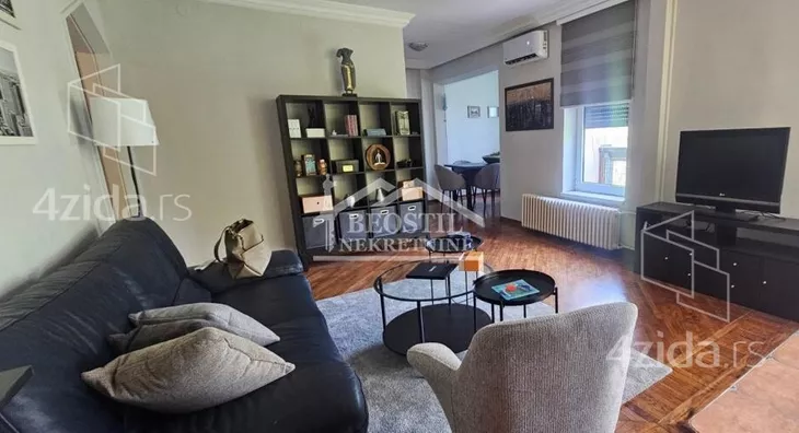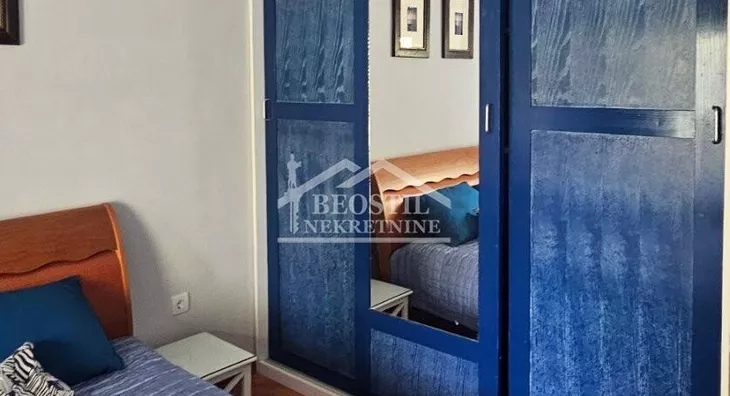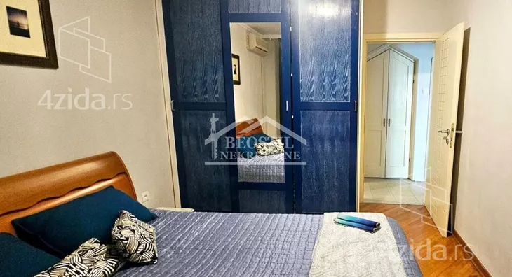 Renoviran stan na 4. Spratu. Sastoji se od dnevne sobe, dve spavaće sobe, kupatila, toaleta i dve terase. Korisne površine 90m2, uknjižen na 76m2. Na odličnoj lokaciji. Agencijska provizija 50% od prve zakupnine.