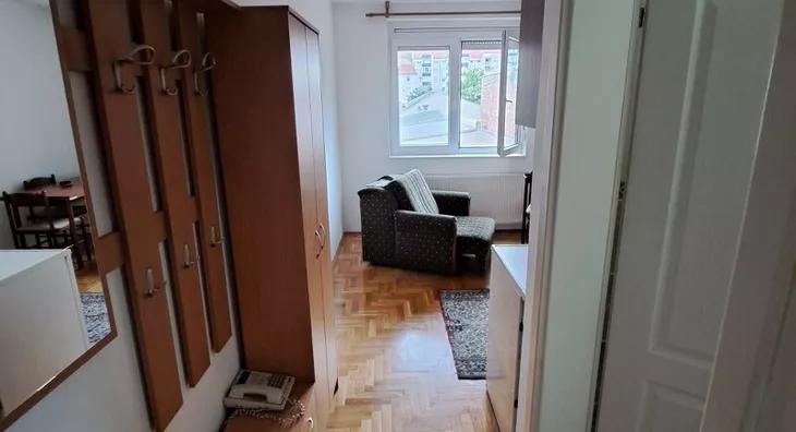 Nudimo vam ušuškan i svetao stan na odličnoj lokaciji, pogodan i za studente zbog odlične povezanosti sa univerzitetom putem gradskog prevoza(stanica kod zgrade,7-8 minuta do univerziteta),stan je na prvom spratu u zgradi sa liftom,poseduje dvorišno orijentisanu terasu i samim tim je izuzetno miran ambijent.
